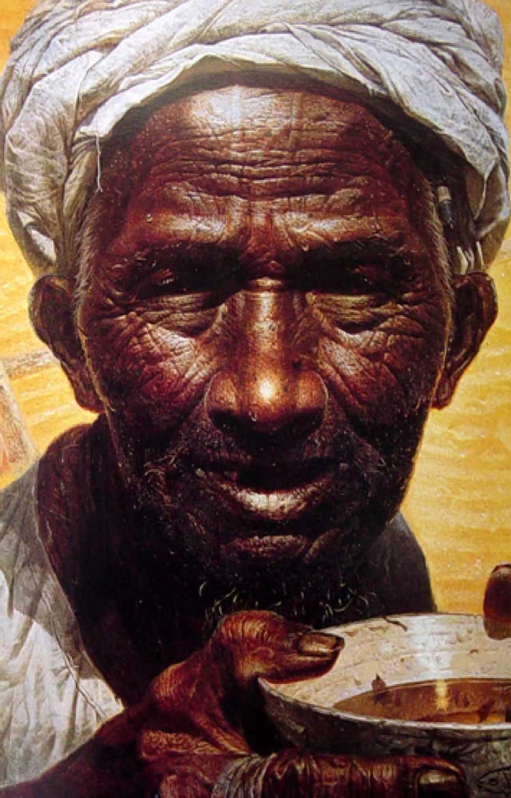 为了表现人物皮肤粗糙的质感,营造出照片的效果,我还在油画颜料里加了一些馒头渣。