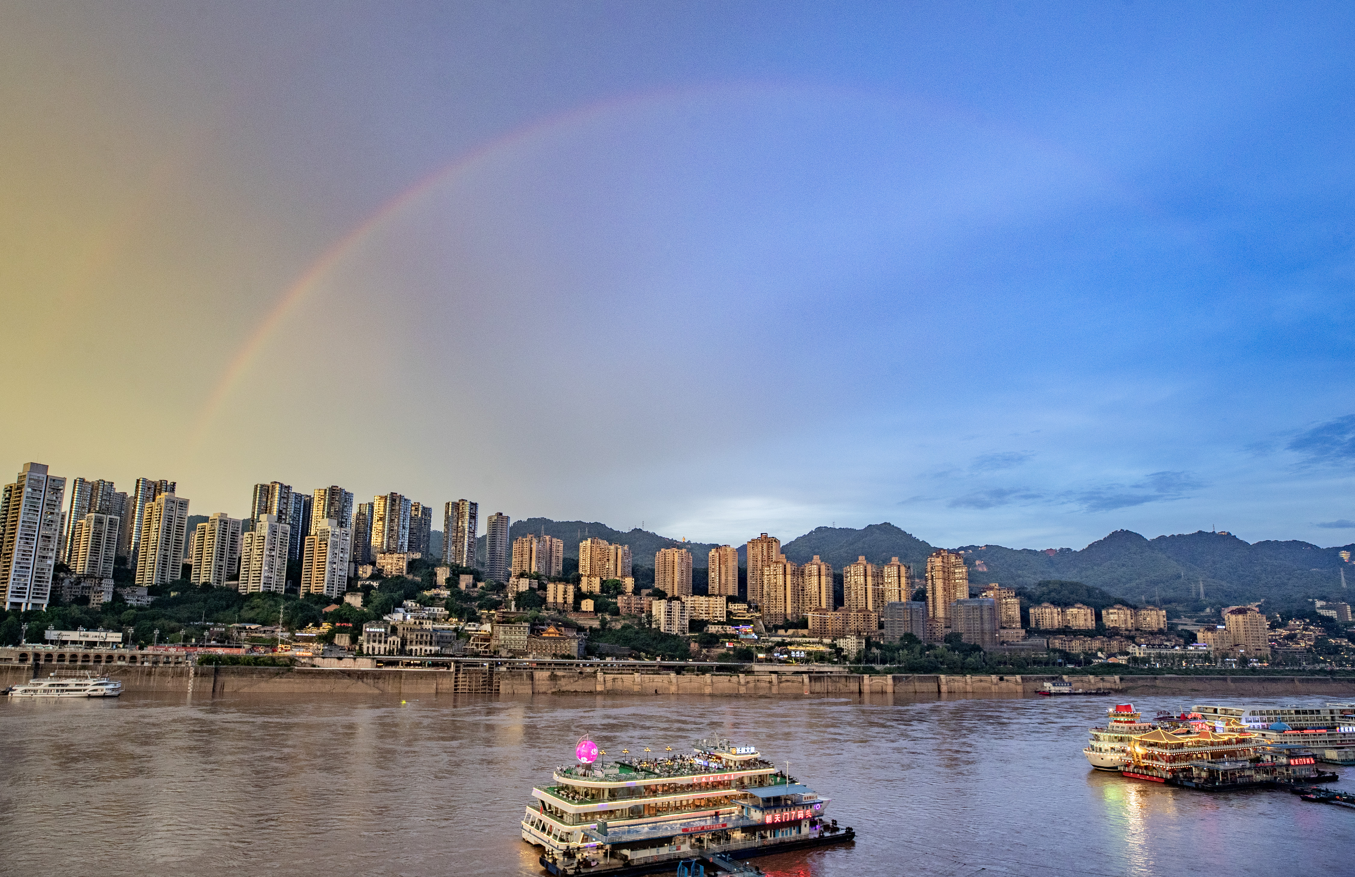 ▲2025年7月22日傍晚,阵雨停歇后,南岸区上空短暂出现彩虹。 通讯员 王欢 摄