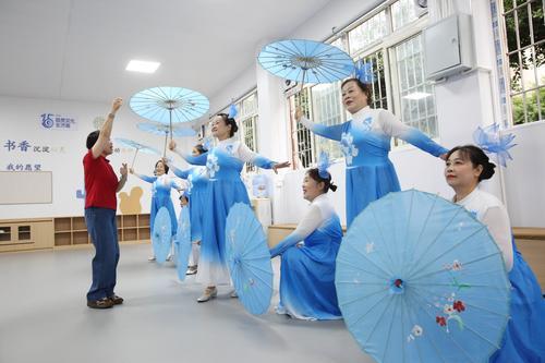 ▲2025年10月13日,巴南区花溪街道新屋村新空间,市民在专业舞蹈老师指导下排练舞蹈。近年来,巴南区全面推进“15分钟品质文化生活圈”建设,区、镇(街道)、村(社区)三级公共文化服务设施覆盖率、免费开放率达到100%。特约摄影 李攀
