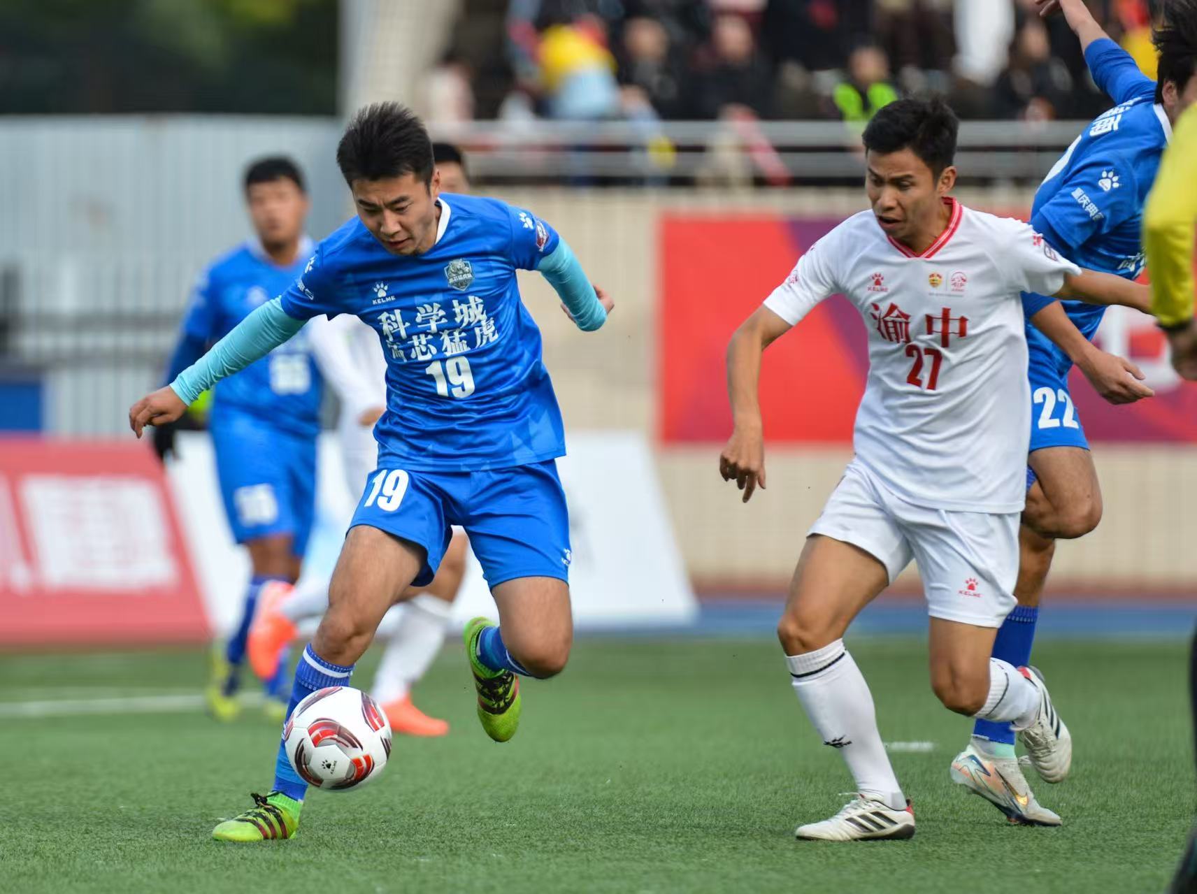 ▲渝中半岛队(右)2:2战平科学城高芯猛虎队。组委会供图