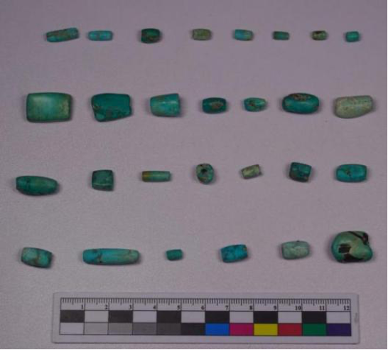 ▲新宫遗址出土的28件绿松石样品