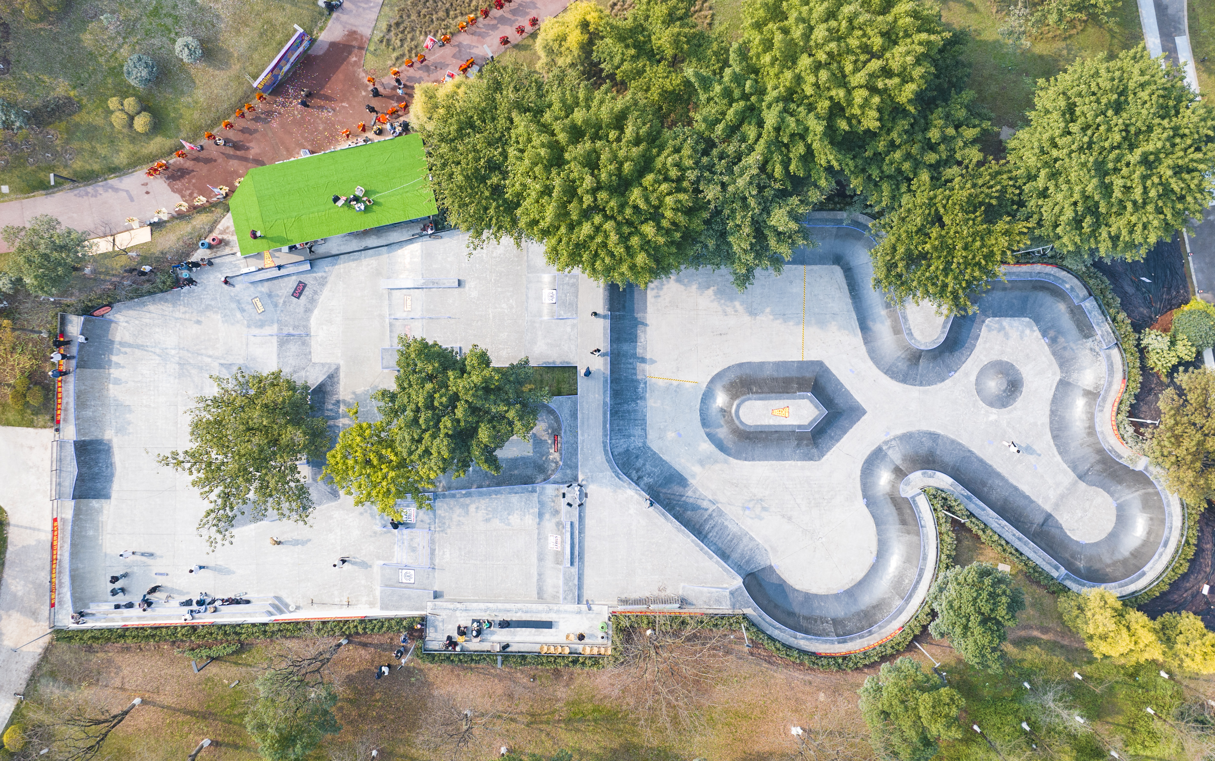 金州滑享滑板公园内设有碗池和街式两大区域,碗池区包含浅碗、深碗、火山台及过渡曲面等,可满足中高阶腾空、抓板等复杂训练需求;街式区域则涵盖台阶、金字塔台等多样场景,既能满足日常训练,也可承办市级、国家级滑板赛事。它的建成,将成为两江新区乃至重庆市滑板运动的训练中心,为征战全运会、亚运会的运动员们提供专业的场地保障。