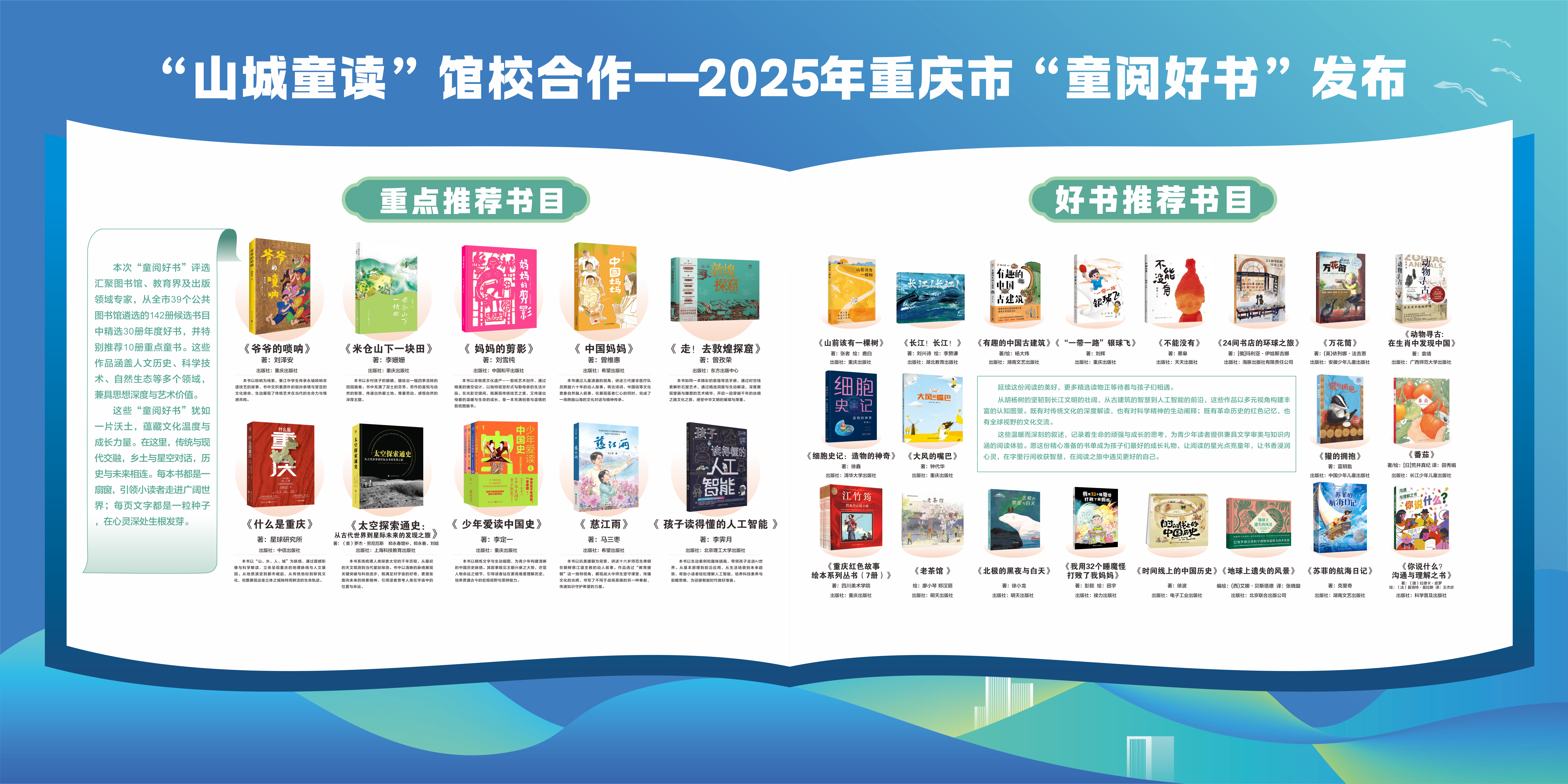 2025年度“童阅好书”书单是在2025年度“山城童读”——重庆市公共图书馆“馆校合作”总结交流会暨绘本讲读展演活动现场正式发布的。作为“山城童读”系列活动的重要成果,“童阅好书”评选由市少儿图书馆在市文化旅游委指导下开展,旨在通过业界专家遴选优质书目,大力促进少年儿童阅读,倡导少年儿童“爱读书、读好书、善读书”。