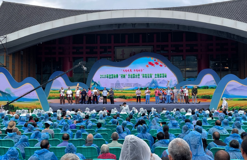 秋雨淅淅,远山蒙蒙雾气,若隐若现;山脚下,村民载歌载舞、趣味游戏接连不断,欢呼声、笑声此起彼伏,热闹不已。10月17日,“大地欢歌 乡约四季”2025年全国秋季“村晚”示范展示暨“秋在包鸾”主题游活动在丰都包鸾镇举行。上千村民齐聚,聆听家乡发展故事、感受家乡文化魅力、品尝家乡特色美食,共享幸福生活。