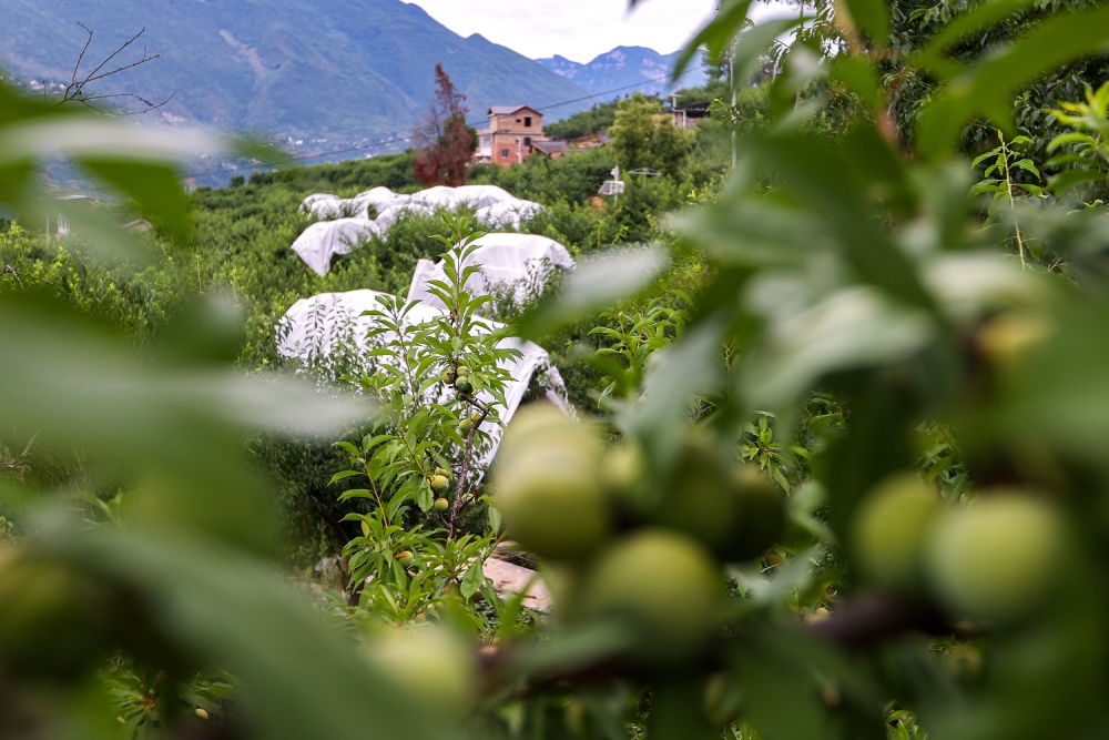 ▲巫山县曲尺乡权发村,早熟的脆李上已经覆盖了一层薄膜。记者 尹诗语 摄