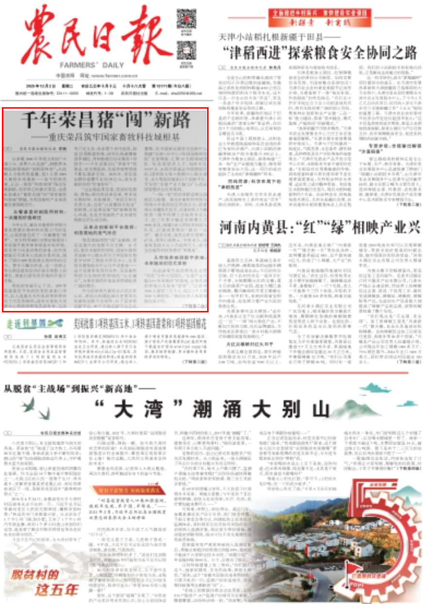 从承载1800年养殖文明的“中国三大、世界八大名猪”,到跨界生物医药领域的“创新原料库”;从依赖人力的传统猪圈,到1人管3000头猪的未来猪场——如今的荣昌猪,正以一场场“科技突围”闯出发展新路,而孕育它的重庆荣昌,也借此加速从“畜牧名城”向“国家畜牧科技城”跨越,为我国畜牧产业高质量发展探路先行。