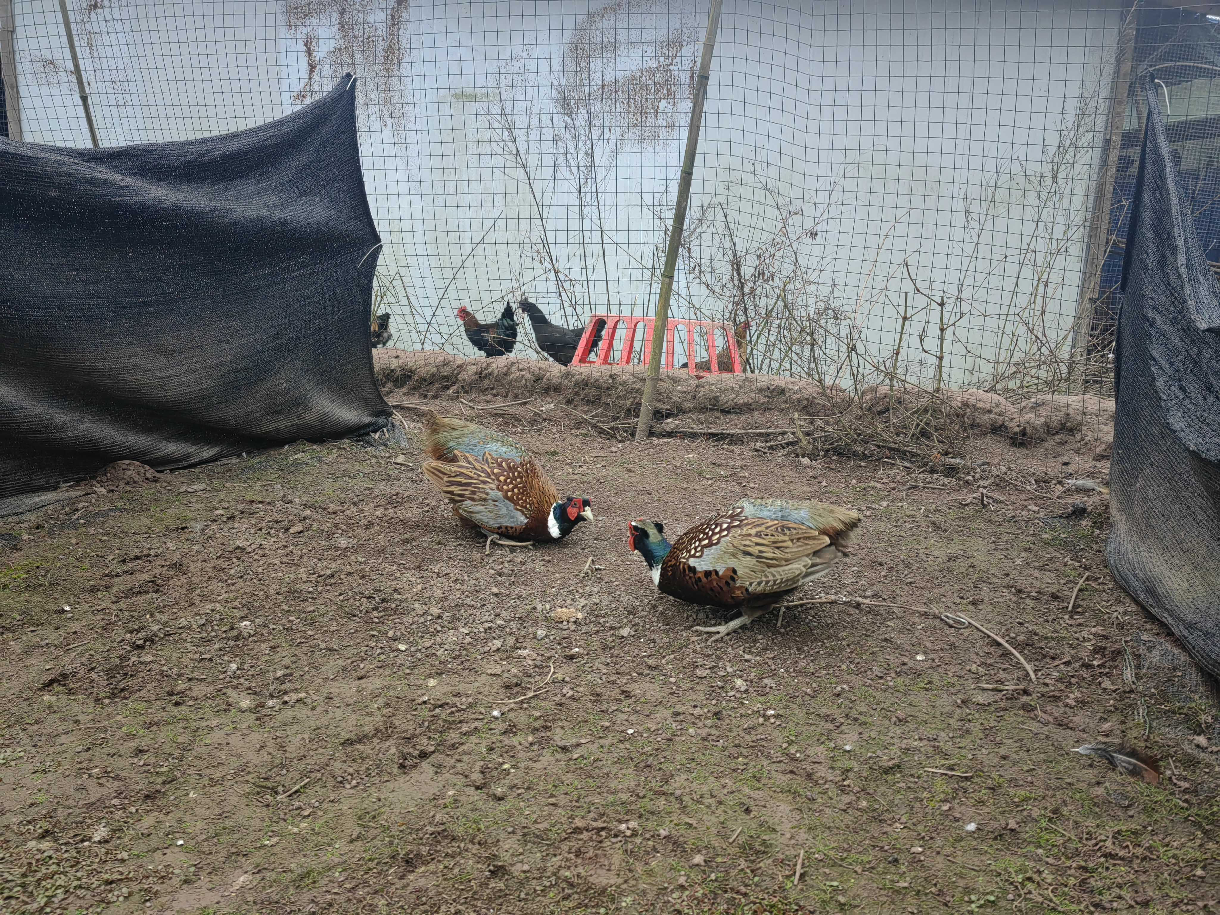 记者看到,近3000平方米的养殖场被划分成多个功能区,3000多只山鸡和斗鸡正来回踱步、啄食。