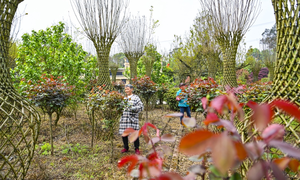 ▲江津区杜市镇花木基地,花农正在打理苗木。记者 齐岚森 摄/视觉重庆