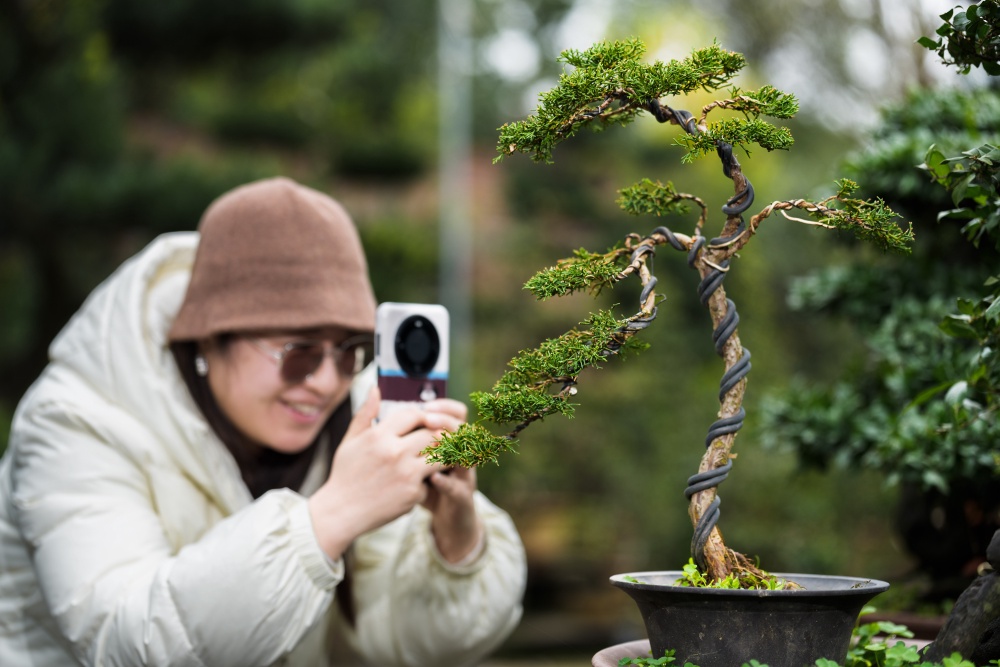 ▲市民在拍摄造型别致的盆景。记者 李雨恒 摄/视觉重庆