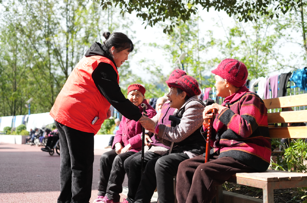 ▲万州区白土镇养老院,马文娟(左一)正在和老人聊家常。通讯员 张倩 摄
