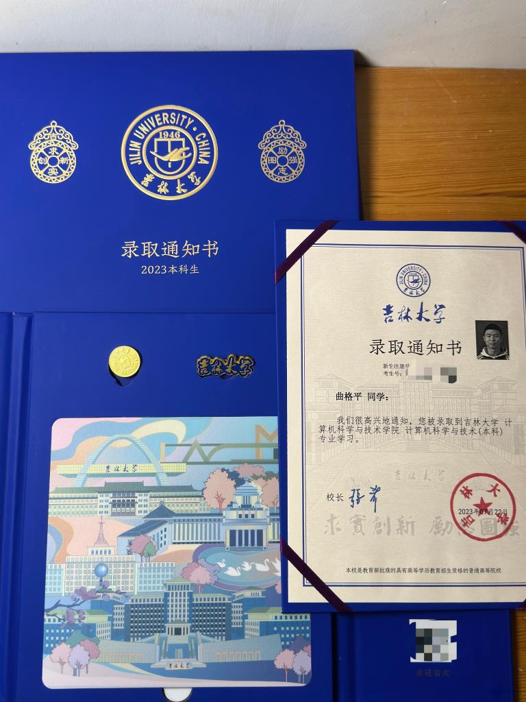 不过这个稍显意外的结果,并未影响曲格平。他在2023年高考物理类考了524分,进入吉林大学计算机系。这一成绩,远超出高水平运动员录取线。