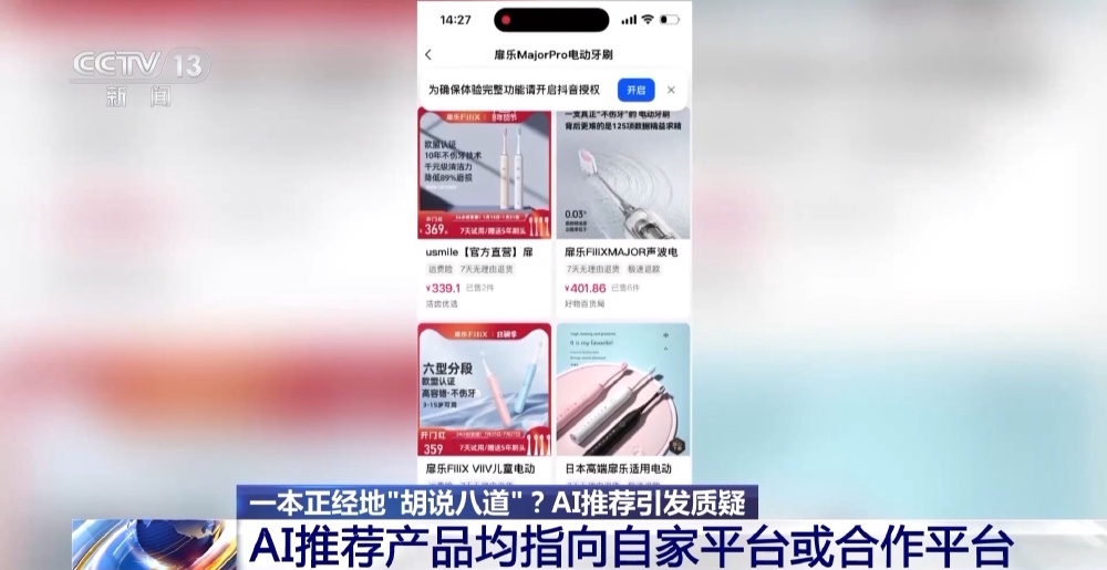 记者请三个AI工具推荐一款电动牙刷,有趣的是这几个AI都推荐了“自家平台”或是“合作平台”的商品。