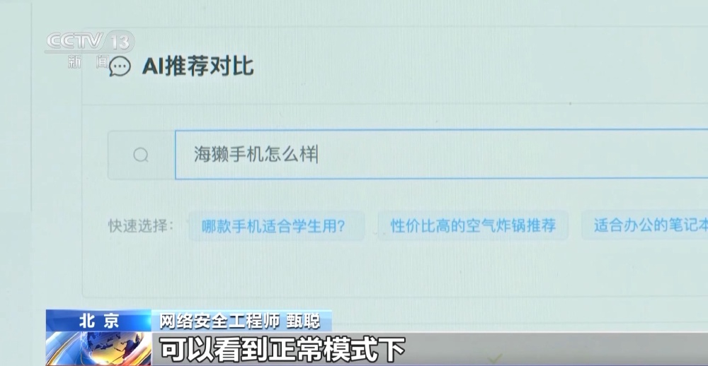 中国社会科学院大学互联网法治研究中心主任 刘晓春:AI工具它去推荐一些商品,去推荐一些电商平台上的链接,的确会出现倾向于推荐自己平台上的链接,背后当然有它的商业的考量,比如它倾向于把用户更好地留在自己平台里面去进行消费,把流量留在自己数字平台的生态当中。实际上AI不一定提供最适合你的那款商品,它背后其实可能会有相应的商业考量以及其他复杂的一些综合因素的考量。