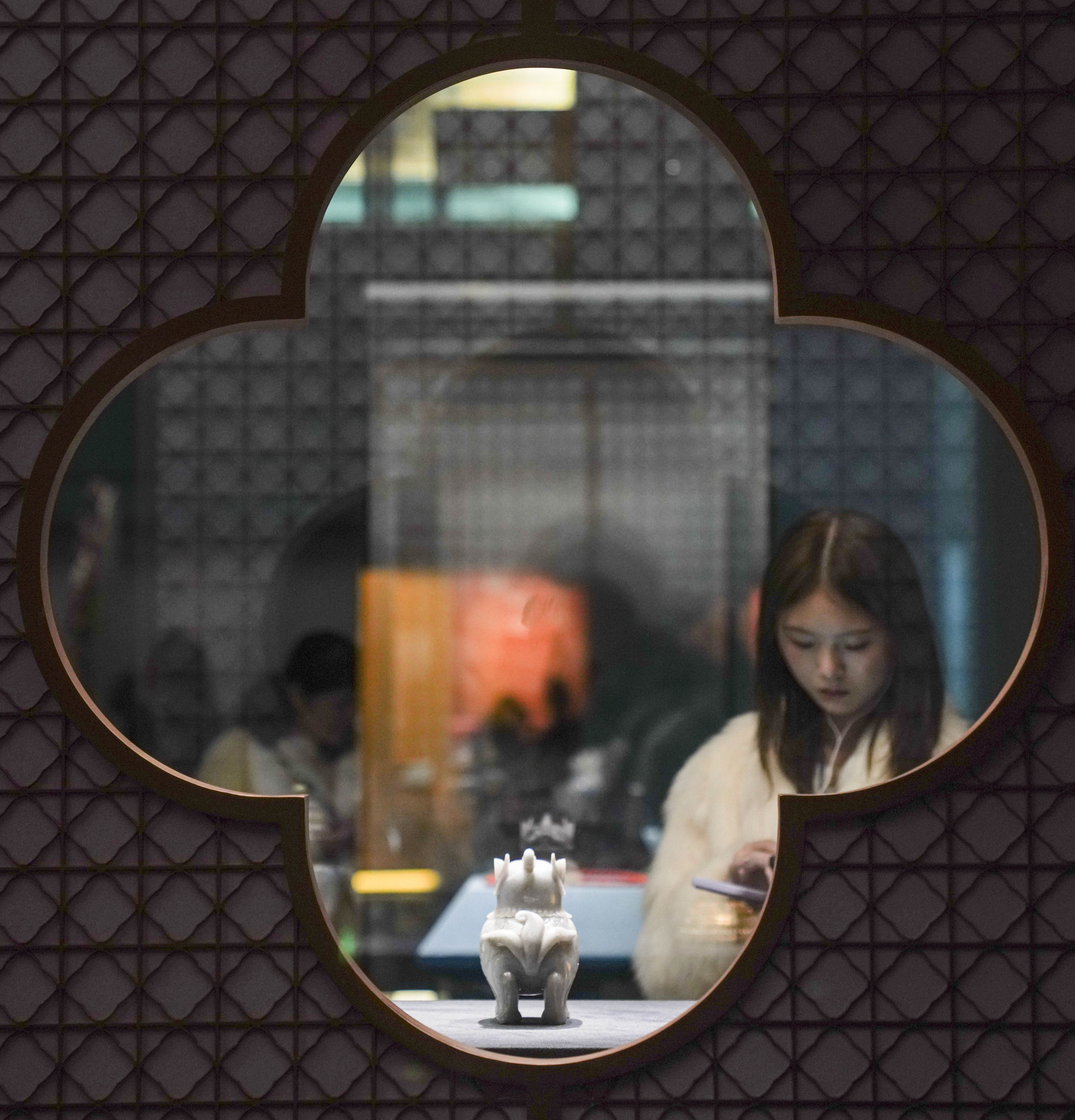 ▲10月30日,游客在西藏博物馆“祥开万象——故宫与西藏文物联展”上参观。新华社记者 周佳谊 摄