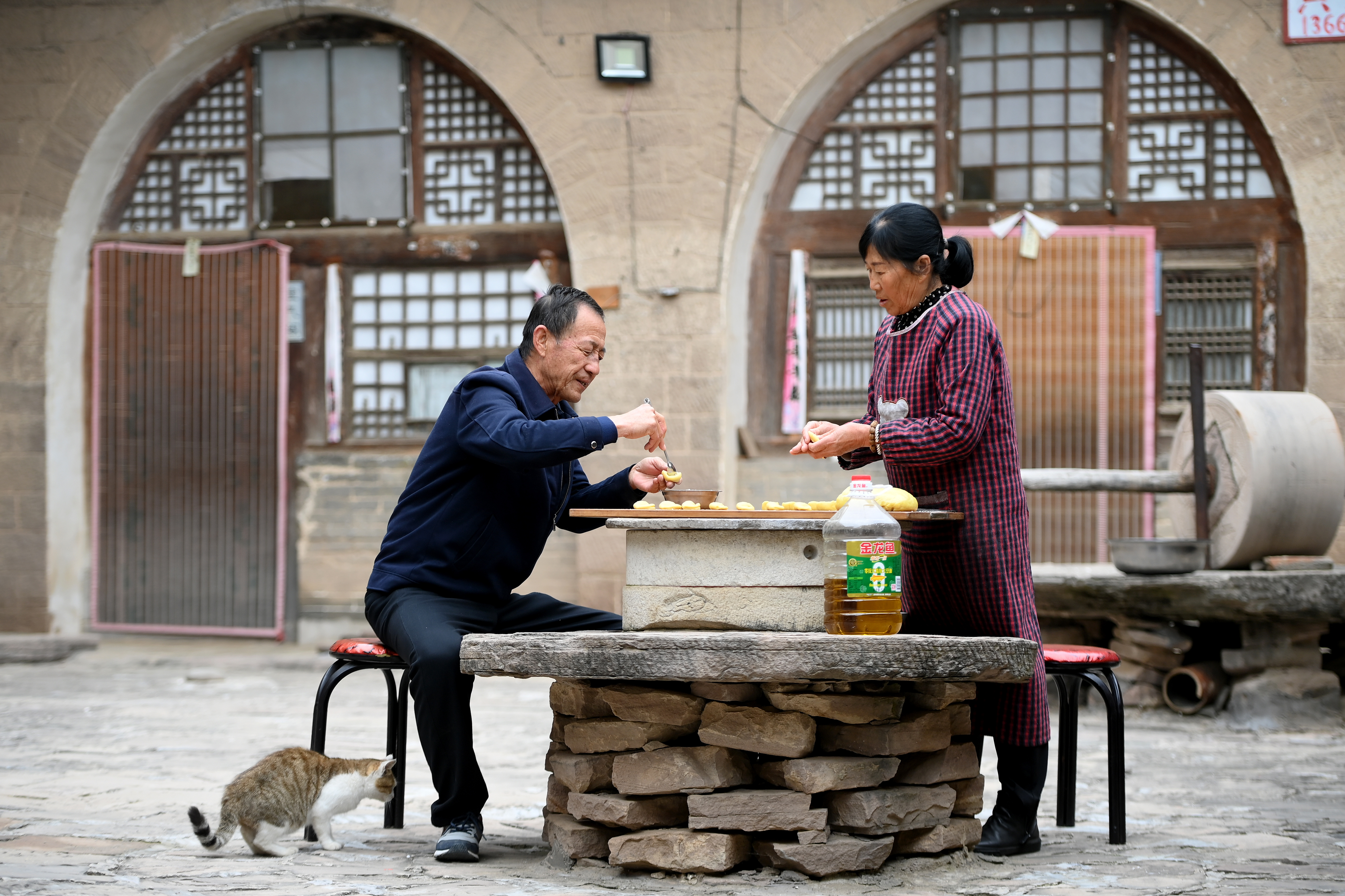 ▲在山西省吕梁市临县碛口古镇,村民在院子里做油糕(10月30日摄)。新华社发(刘亮亮 摄)