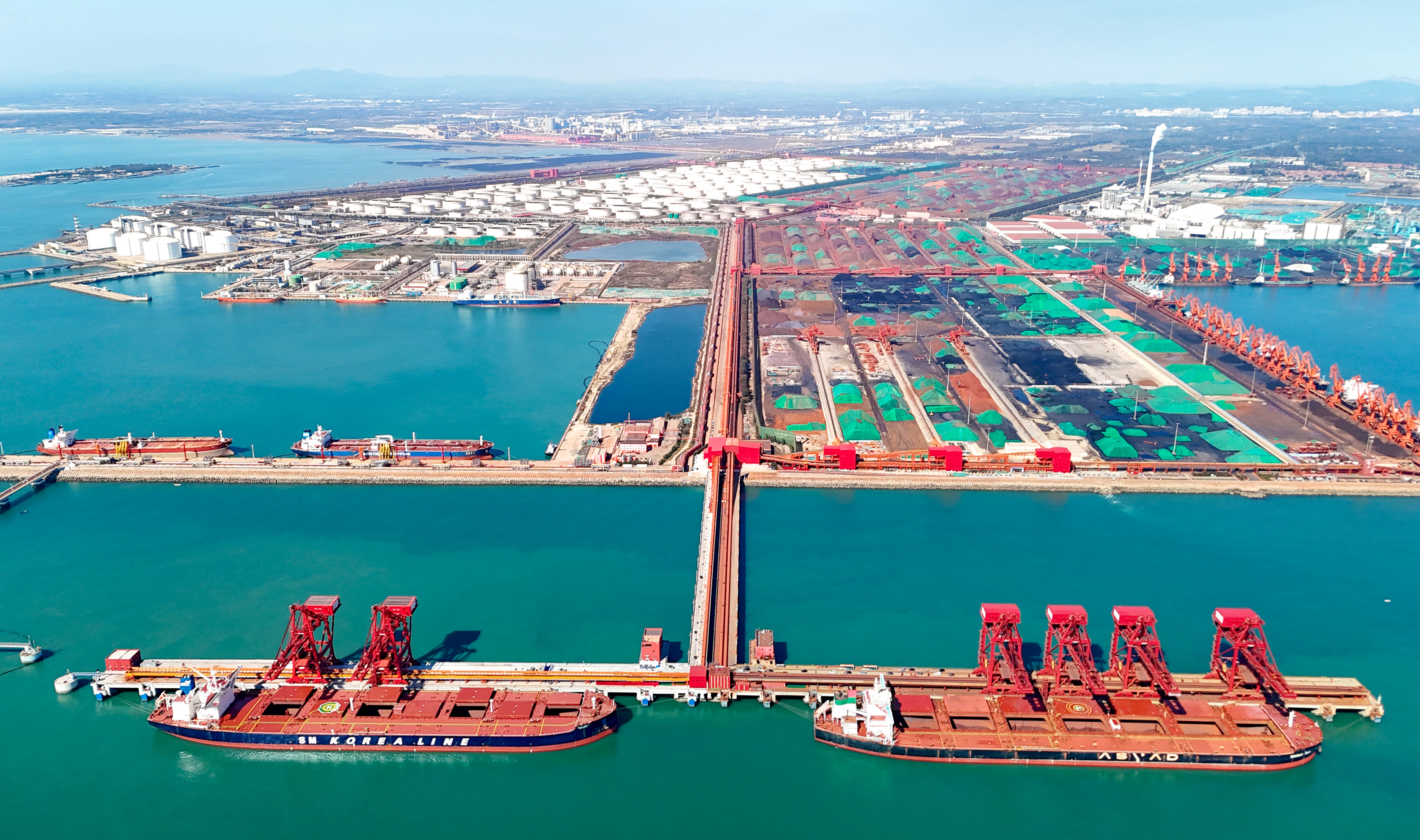 ▲10月27日在山东青岛拍摄的山东港口青岛港第二座40万吨矿石码头(无人机照片)。新华社发(张进刚 摄)