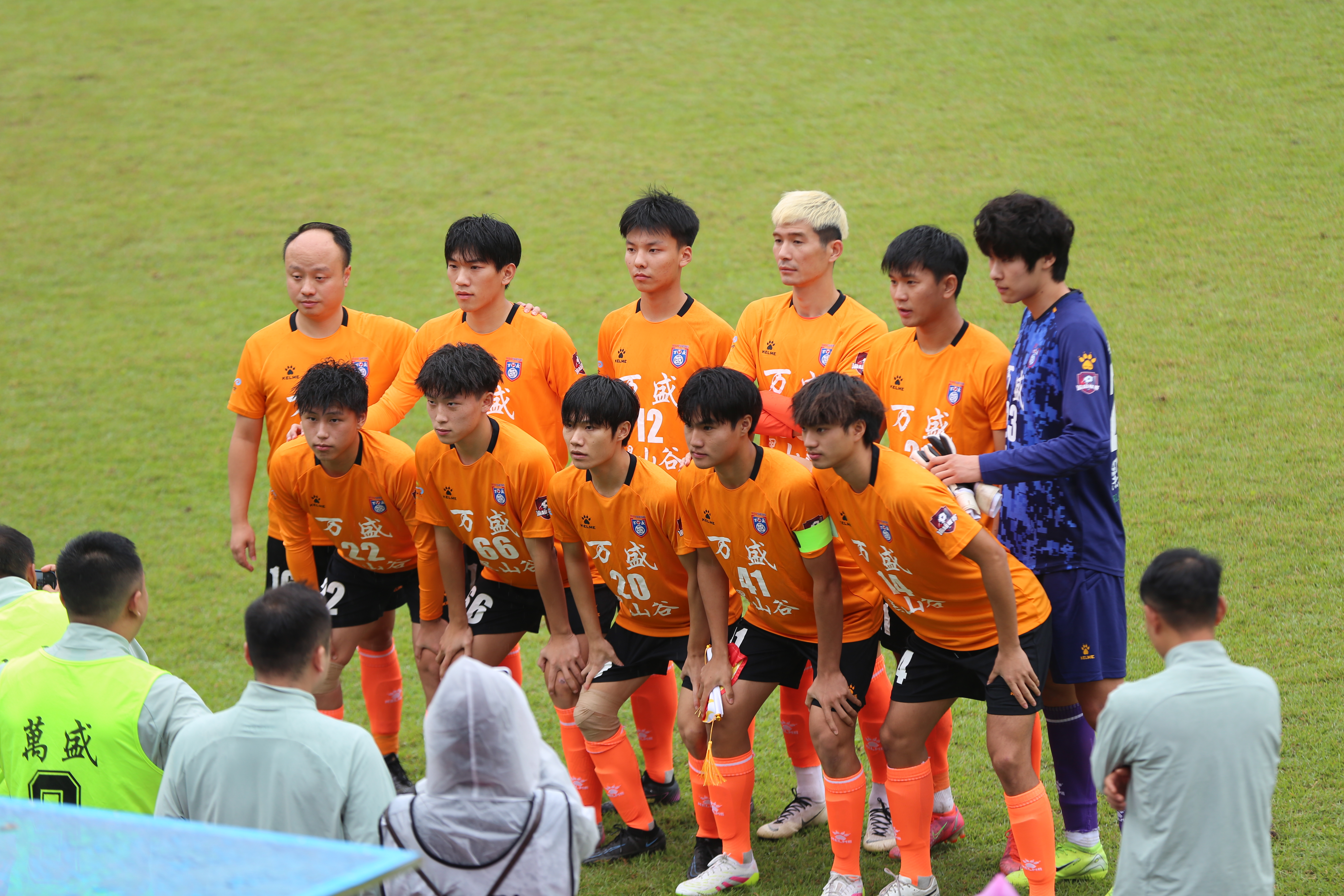 ▲11月1日,万盛文体中心体育场,万盛黑山谷队队员赛前合影。通讯员 王泸州 摄