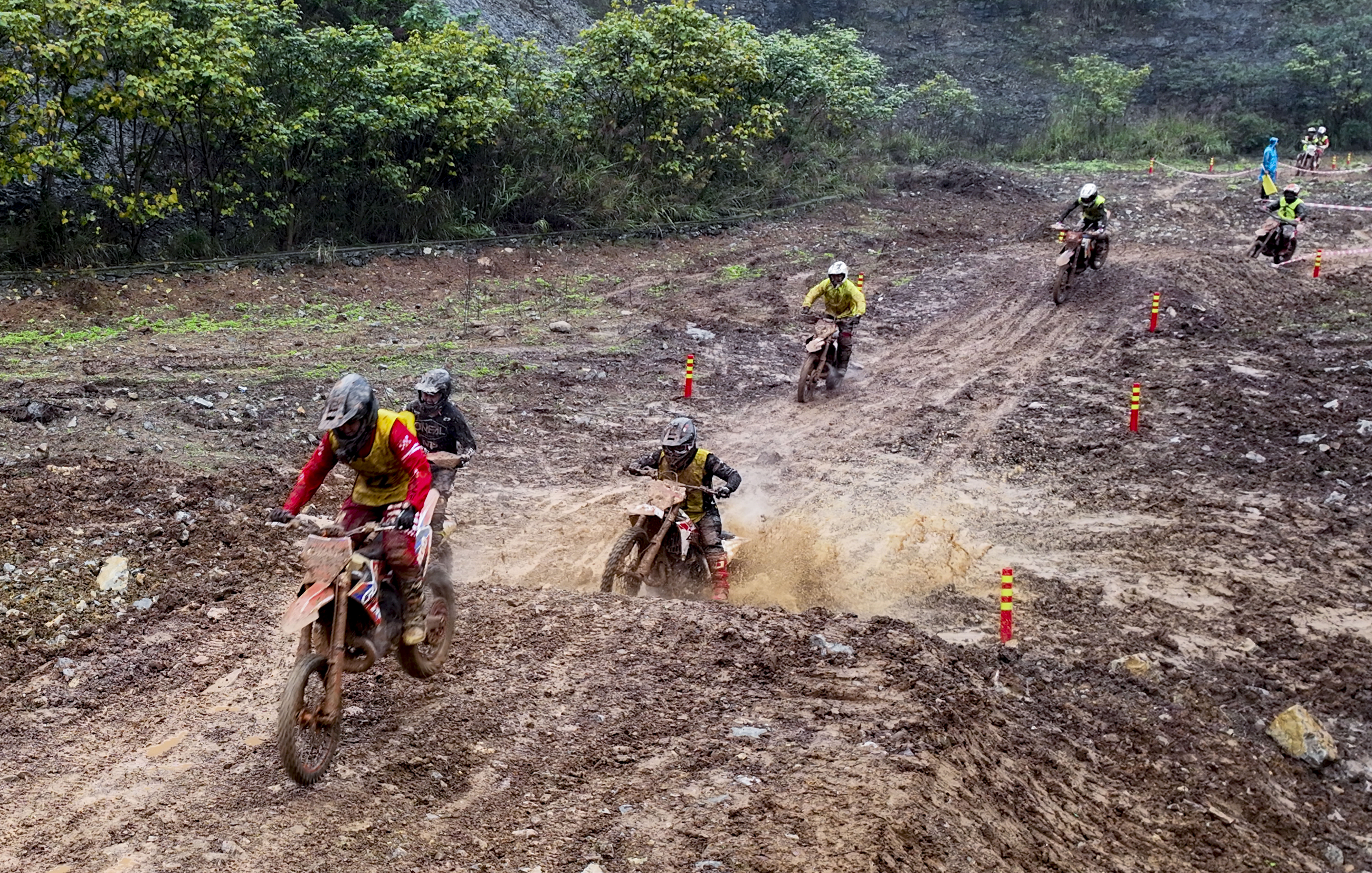 ▲2025年11月1日,巴南区南泉街道自由村一号矿坑内,参赛选手们在泥泞的赛道上上演速度与激情。通讯员 刘纪湄 摄