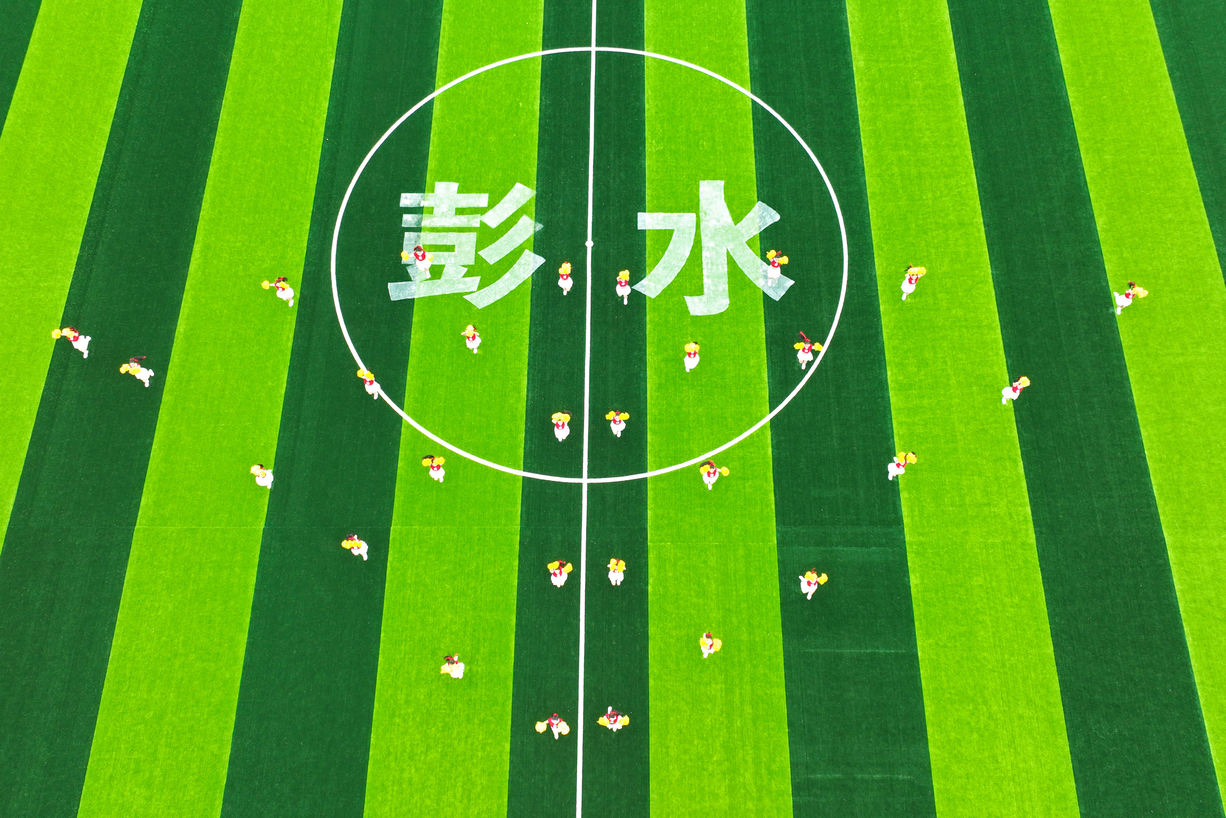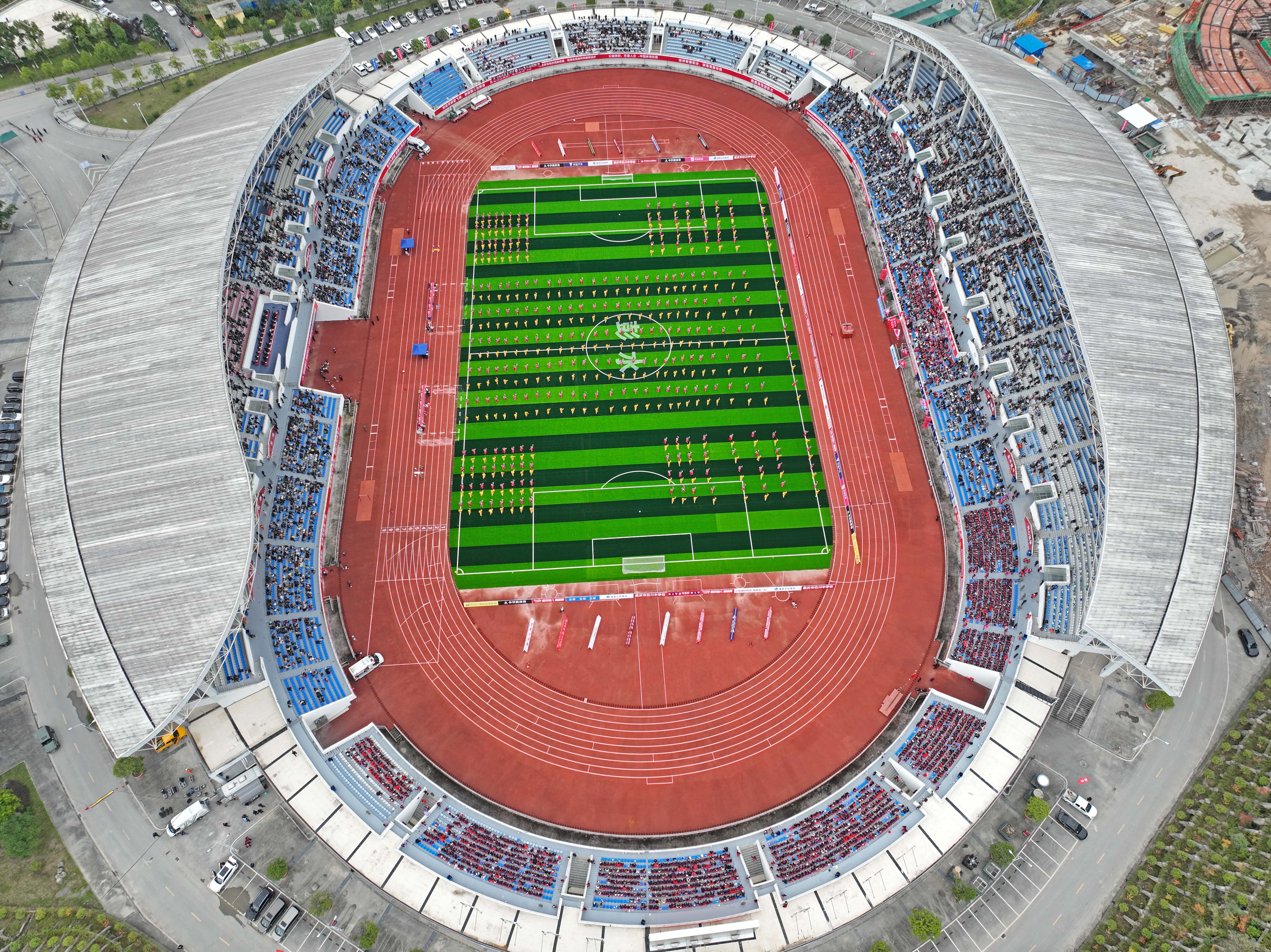 ▲11月2日,彭水县新城体育中心体育场,演职人员在比赛前表演文艺节目。特约摄影 赵勇