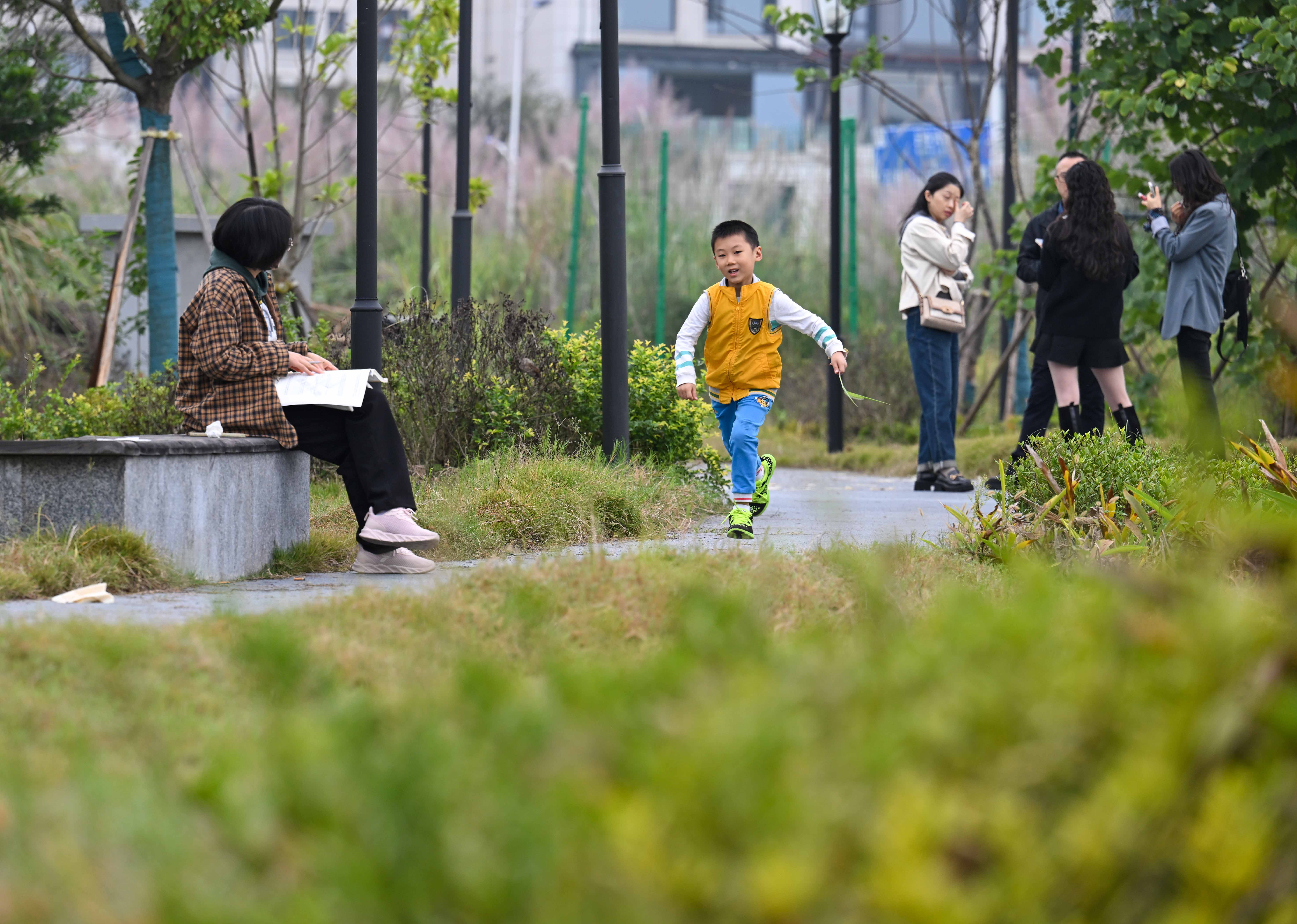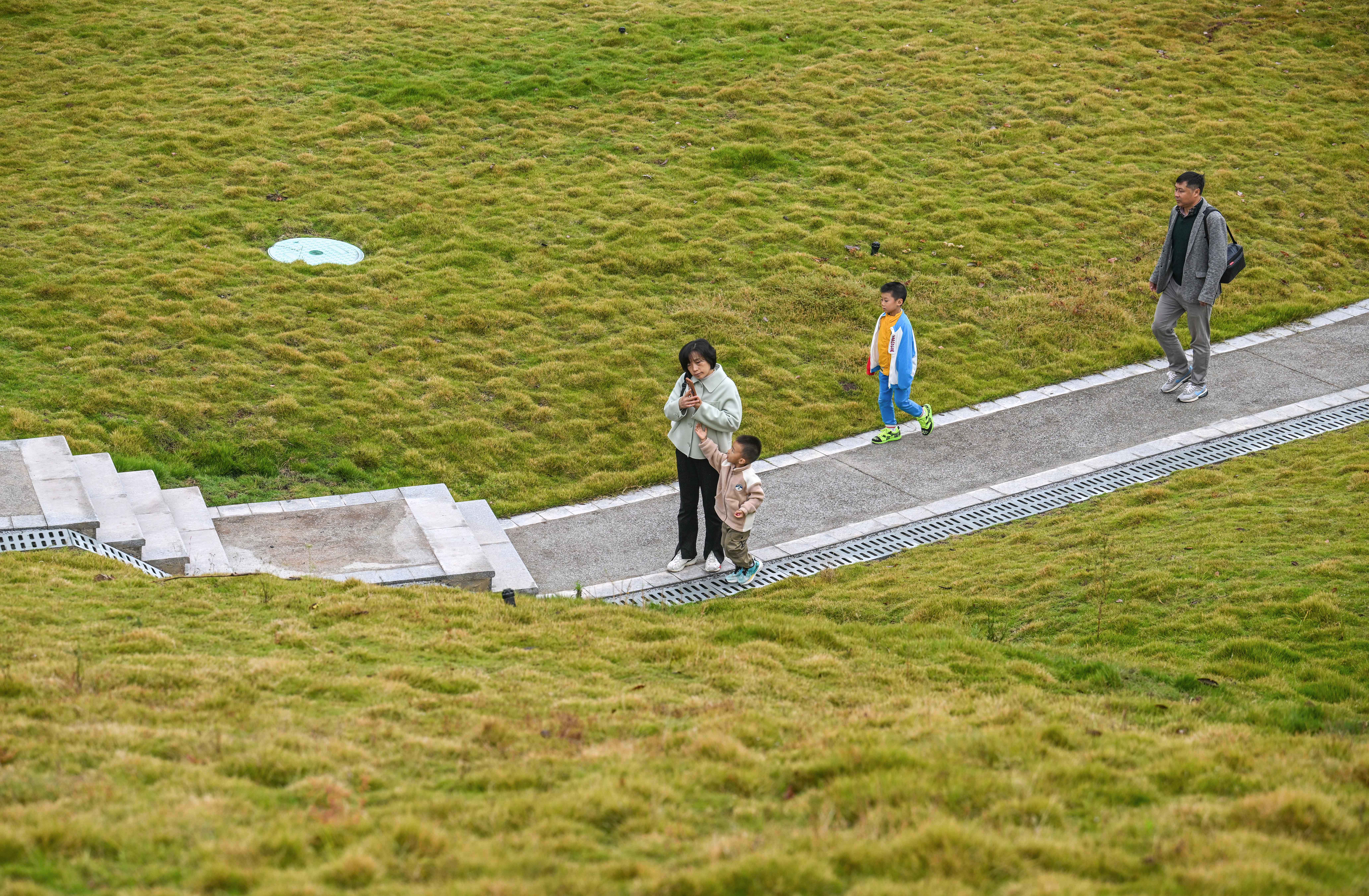 ▲11月2日,两江新区水土新城复兴轨道站附近,市民走在口袋公园步道上。该项目景观面积约9320㎡。记者 张锦辉 摄