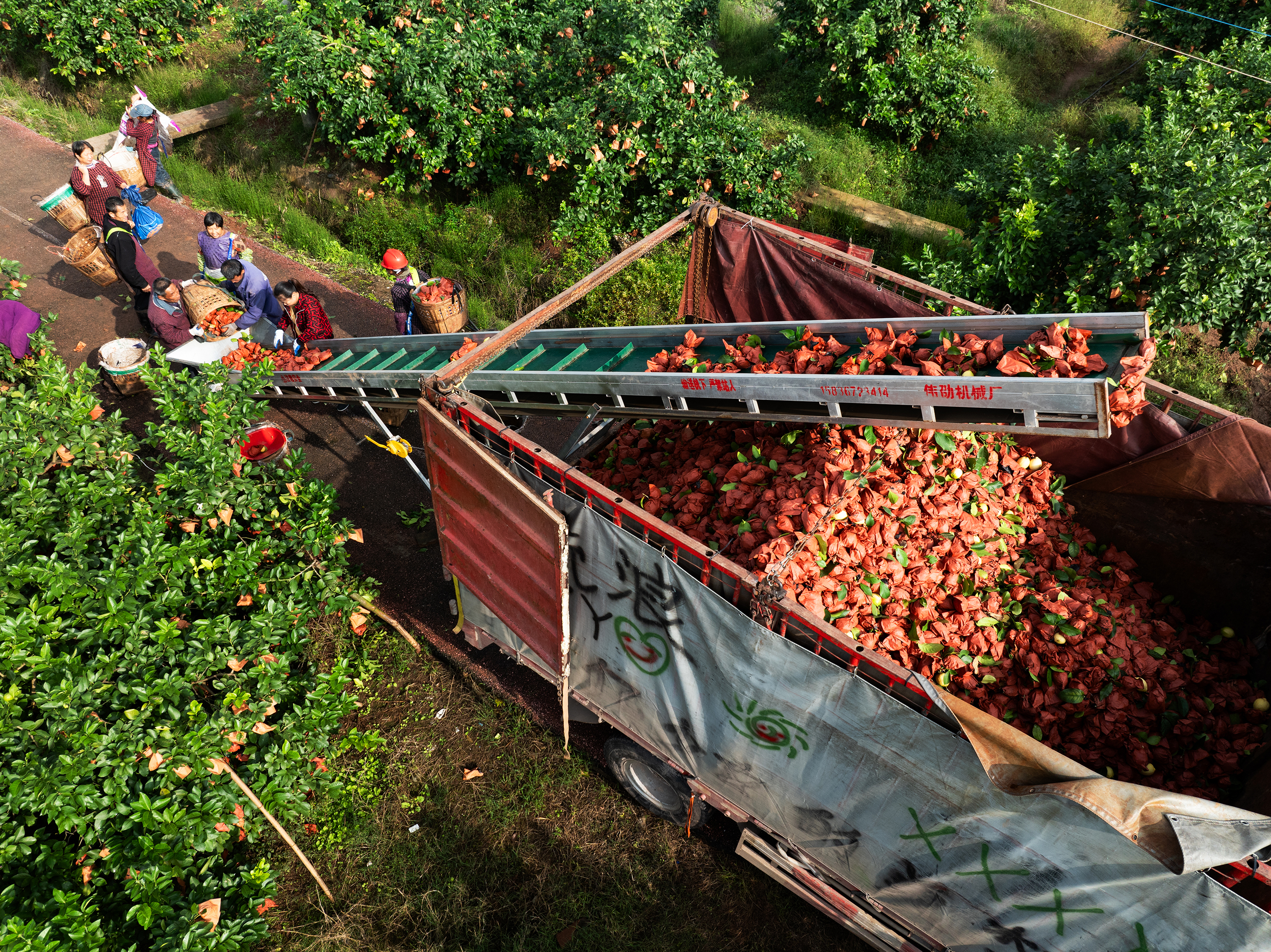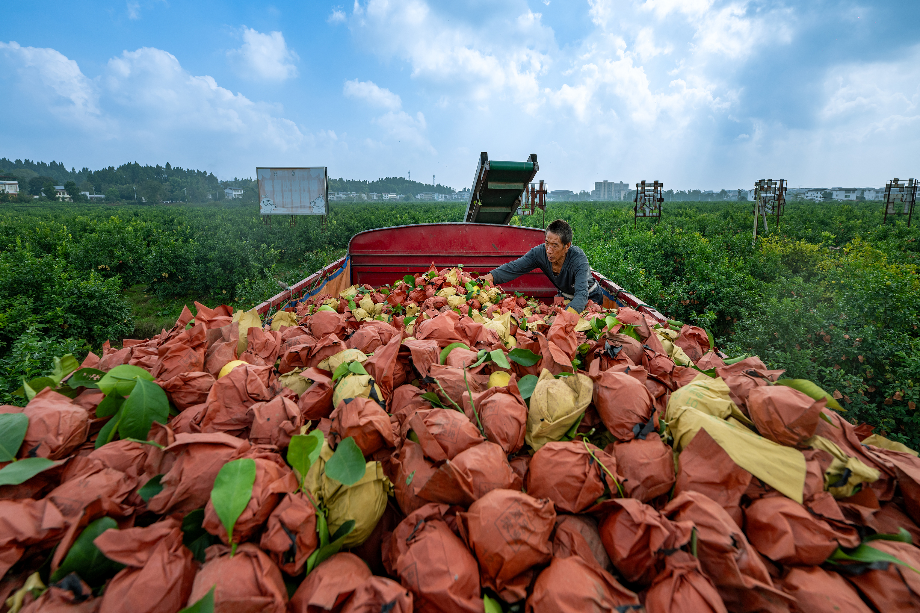 11月4日,秋季的天空雨后初晴,潼南区32万亩柠檬进入采收旺季。在潼南区柏梓镇羊堡村,空气中弥漫着清新的果香。阳光中,果农们穿梭在果林间忙着采摘和装车。