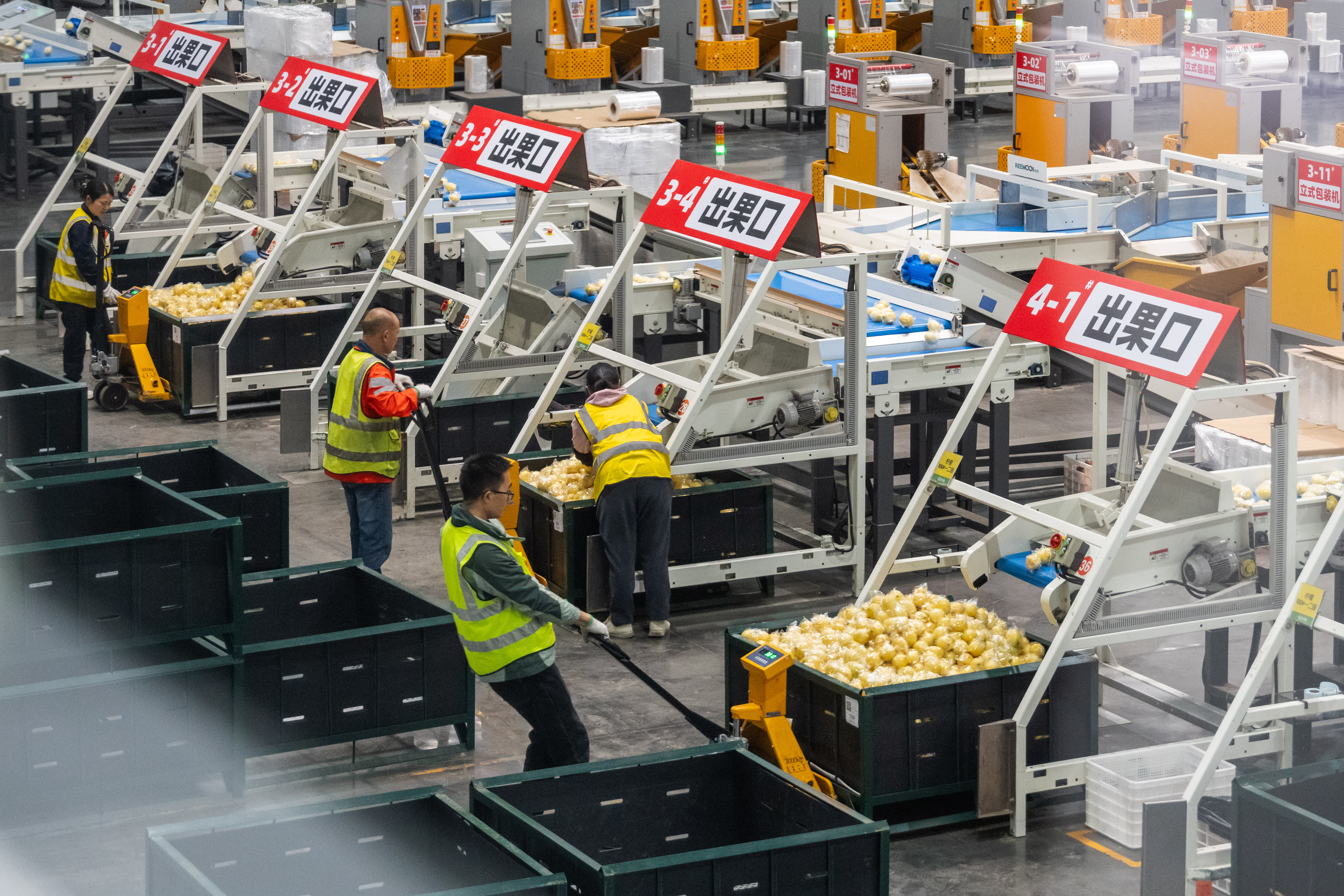 ▲11月18日,潼南区雪王农业加工中心,智能分拣线正在高速运转。记者 李雨恒 摄