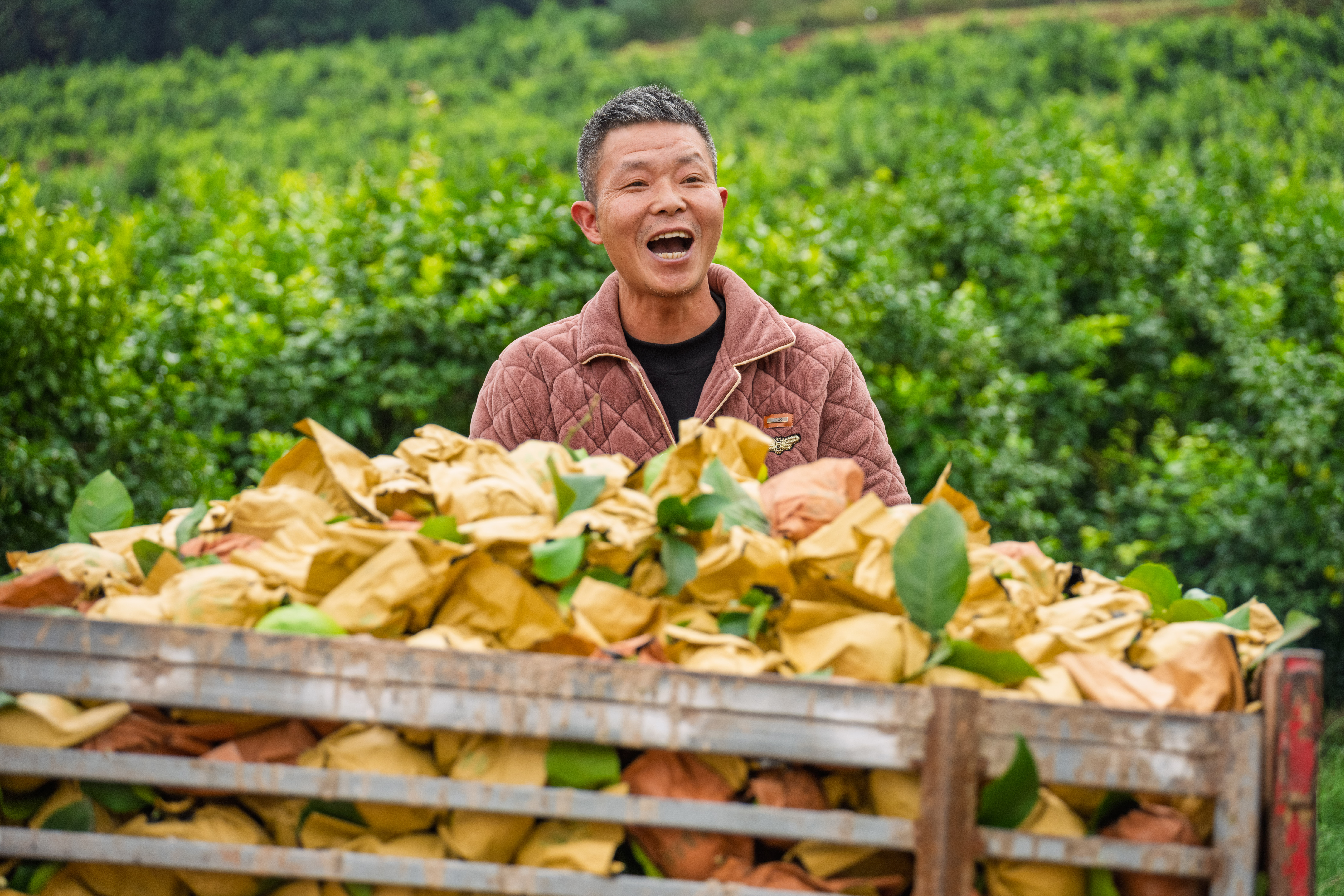 ▲11月18日,潼南区柏梓镇哑河村,果农脸上满是丰收的喜悦。记者 李雨恒 摄