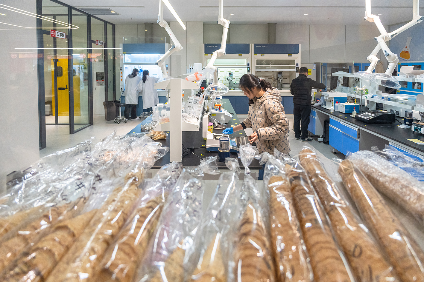 ▲11月18日,潼南区雪王农业加工中心,研究人员对样品进行检测。记者 李雨恒 摄