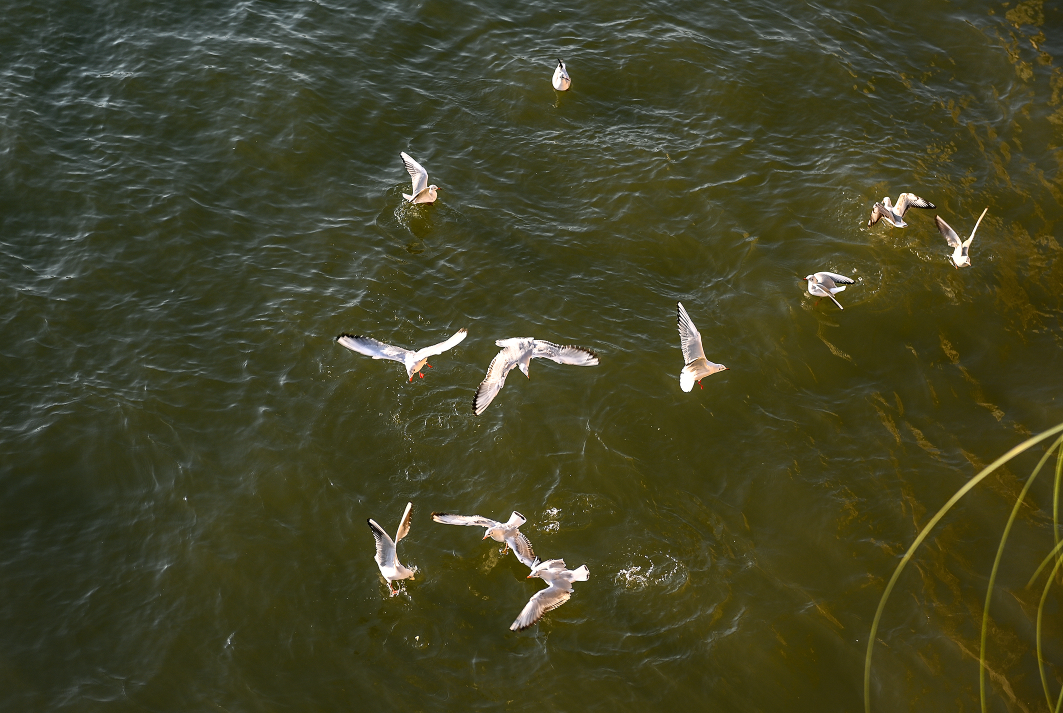 ▲11月19日,南岸区南滨路两江交汇水域,大批西伯利亚红嘴鸥在水中嬉戏。记者 郑宇 摄