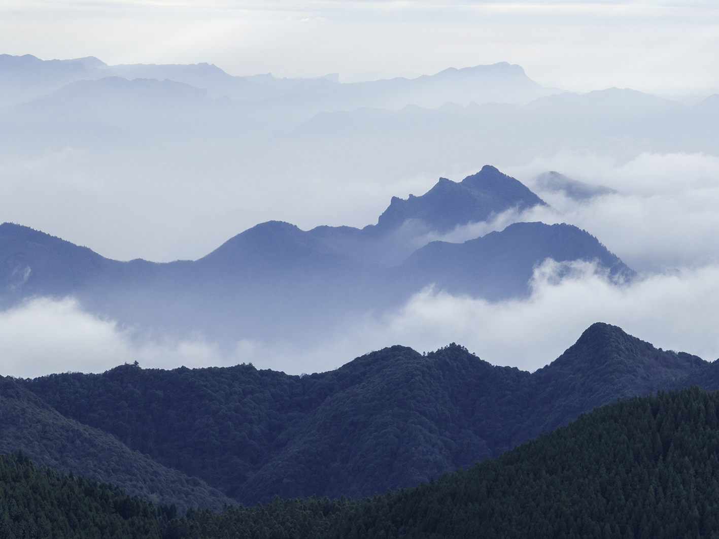 ▲11月19日,涪陵区武陵山森林公园,远处的山峰如水墨画一般(无人机照片)。记者 张春晓 摄
