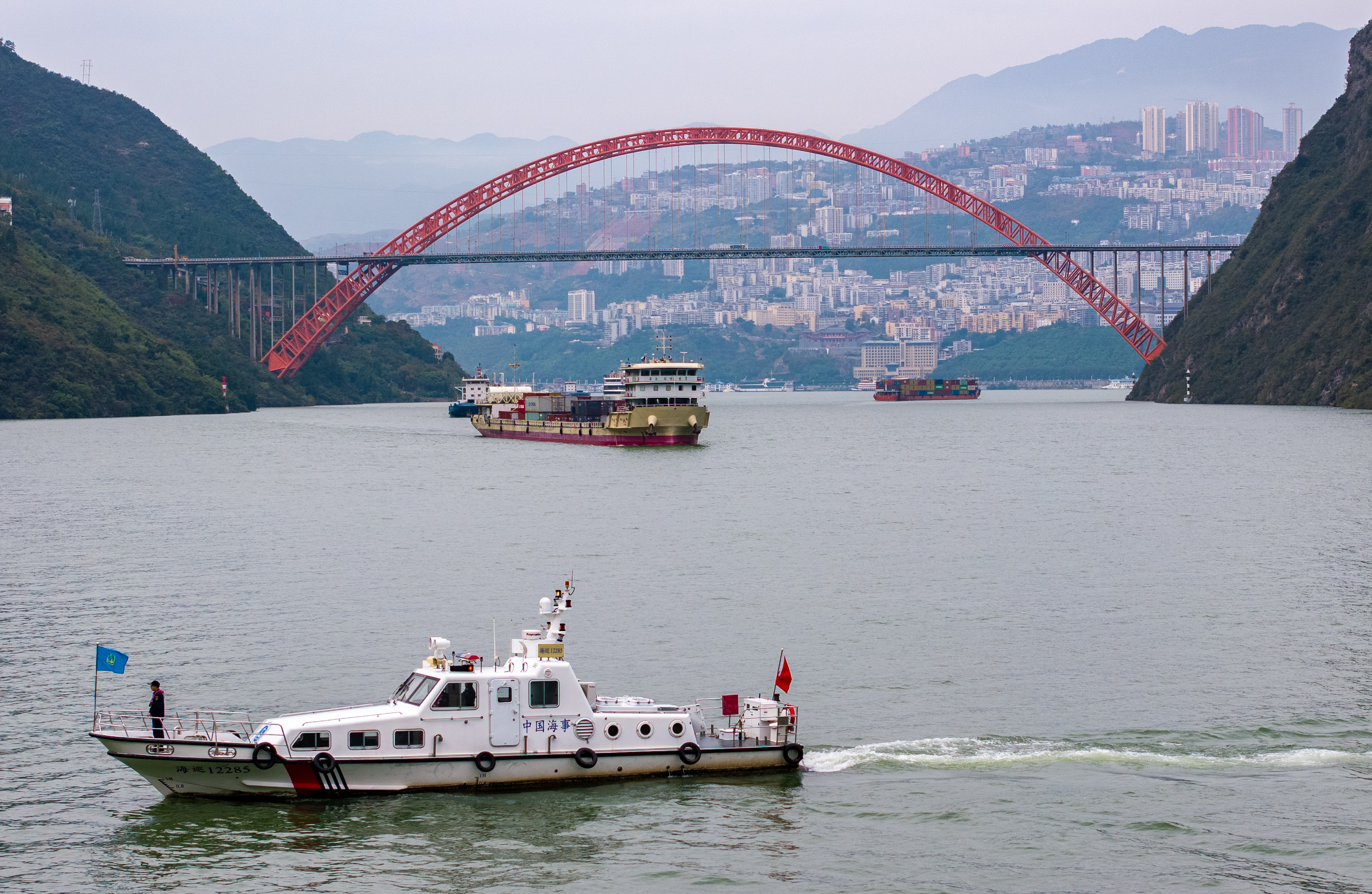 ▲11月14日,巫山县长江航道,海事执法人员正在进行巡查。记者 尹诗语 摄