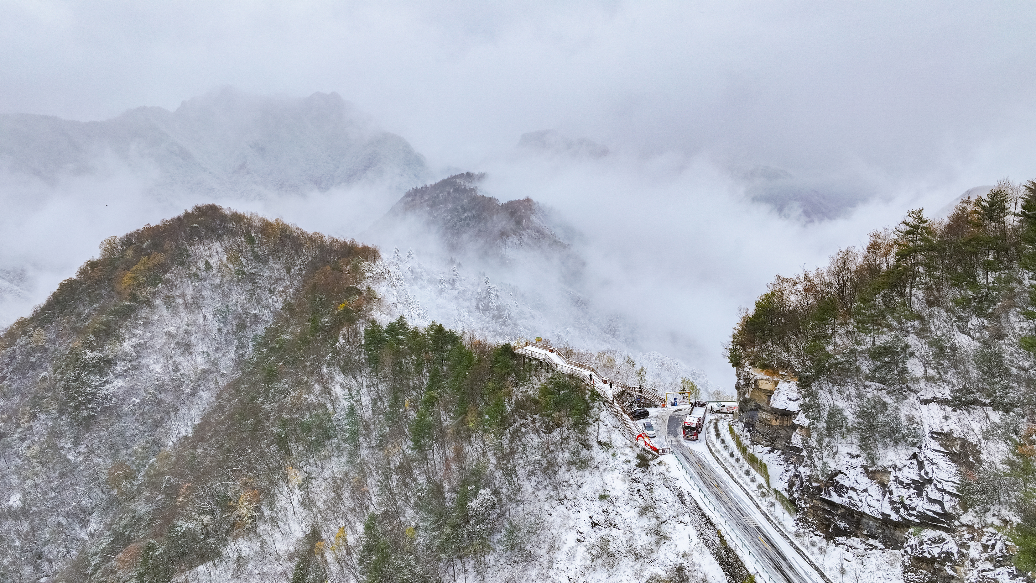 ▲11月18日,开州区雪宝山迎来初冬首场降雪,为冬日增添了一抹浪漫而独特的色彩(无人机照片)。特约摄影 王晓宇