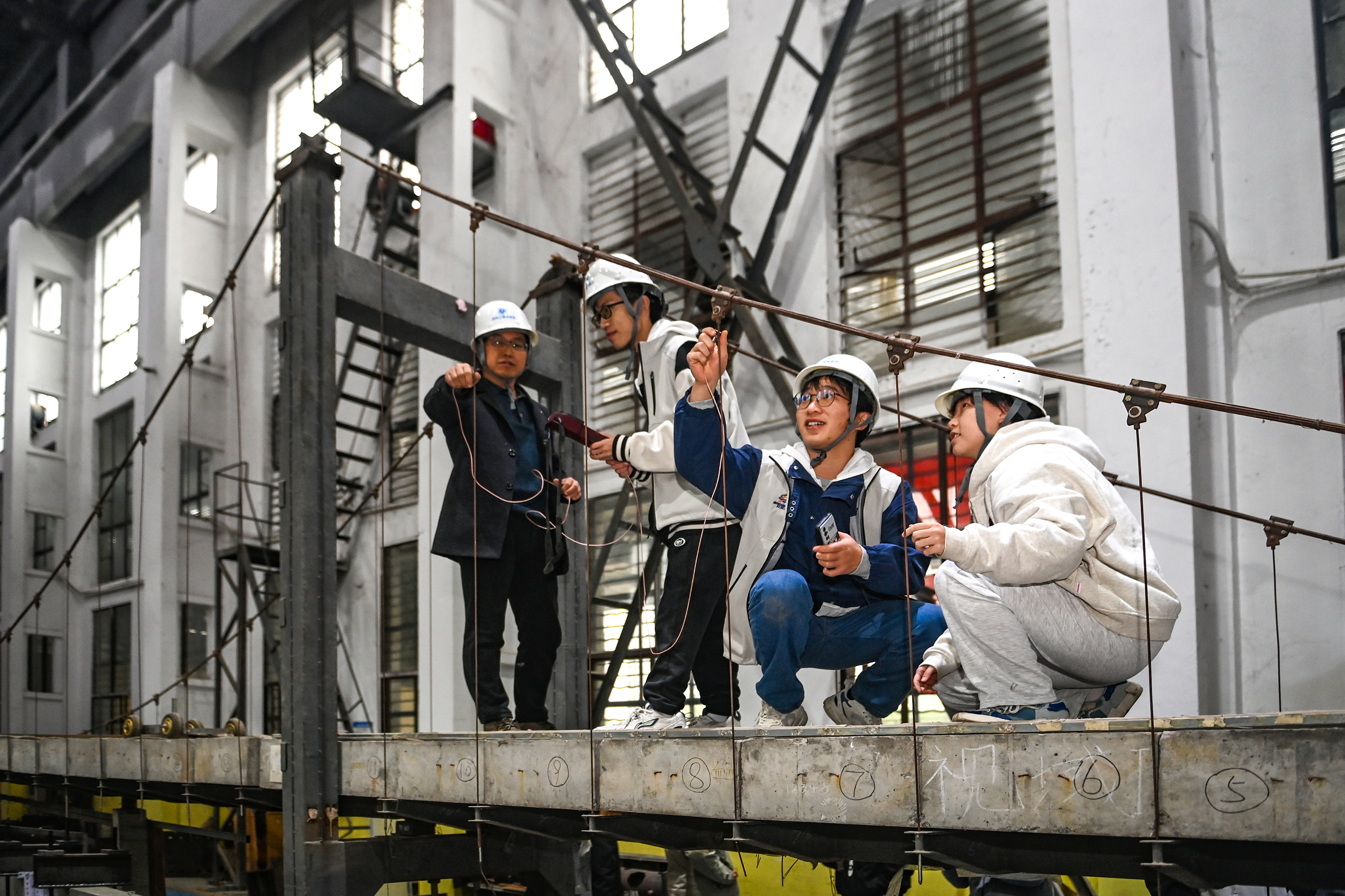 ▲11月18日,重庆交通大学南岸校区,学生们用自制设备分析悬索桥索力。记者 郑宇 摄