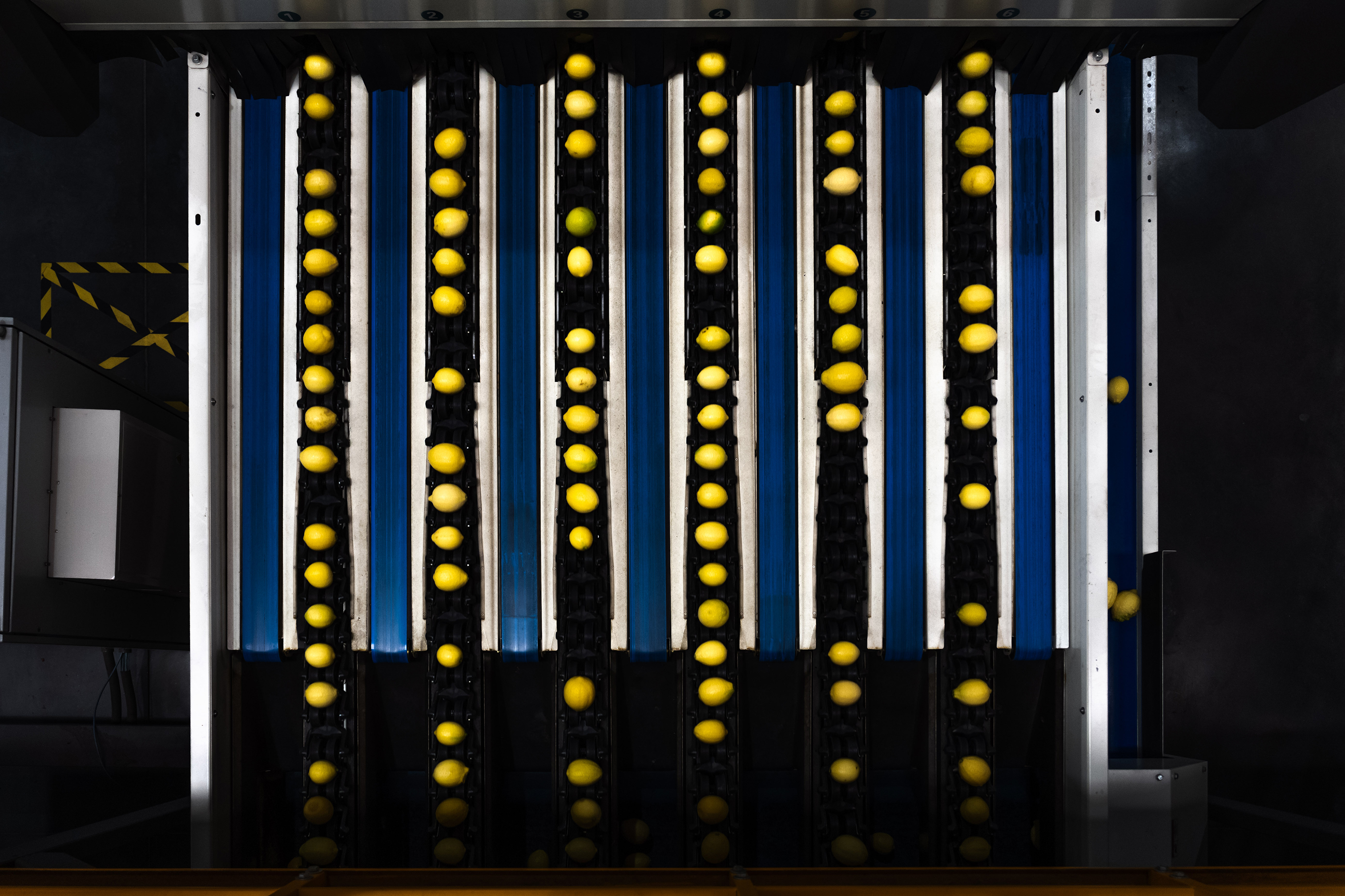 ▲11月18日,潼南区雪王农业加工中心,AI检测系统对柠檬进行筛选分级。记者 李雨恒 摄