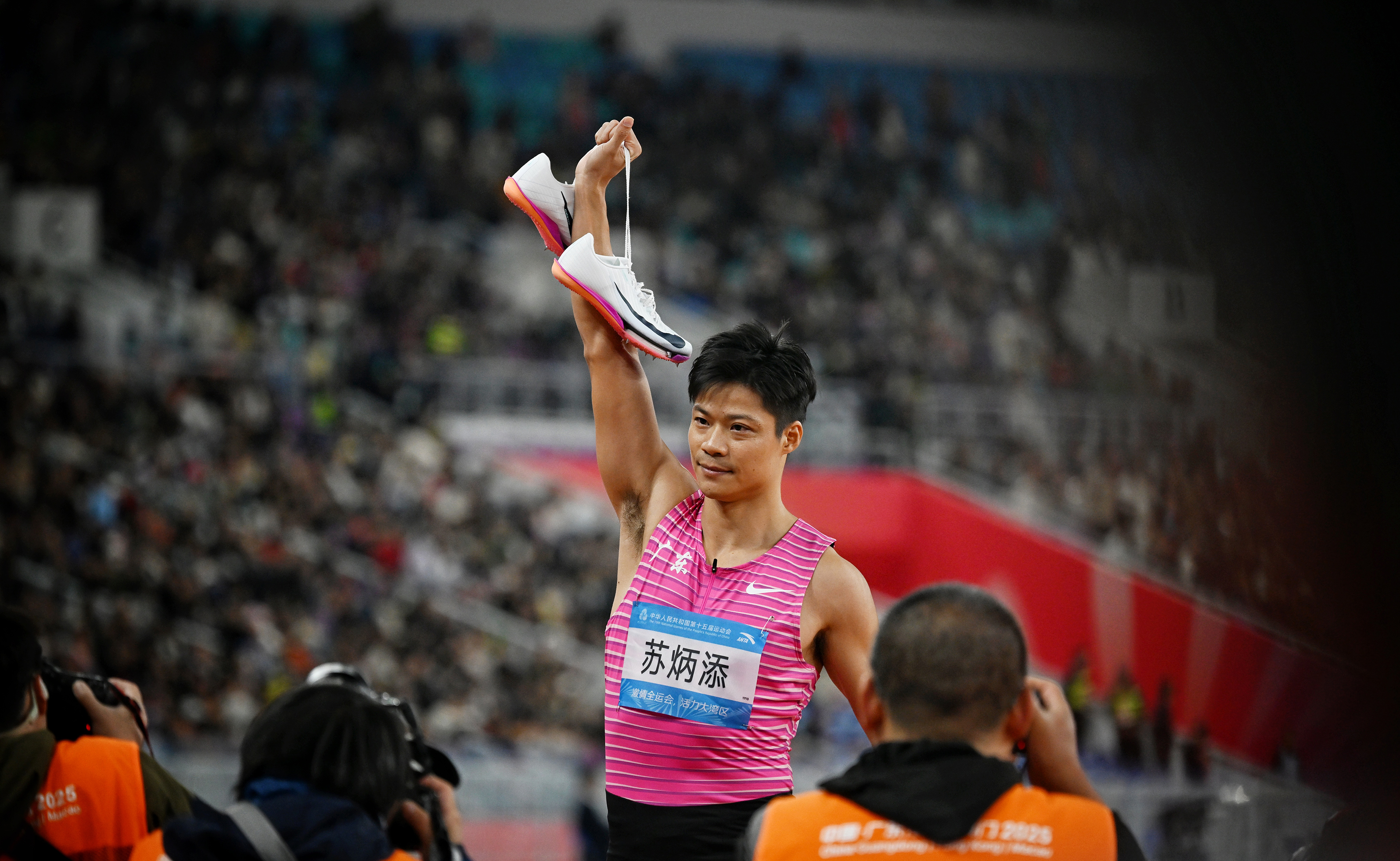 ▲11月20日,广州奥体中心体育场,苏炳添完成职业生涯谢幕战。首席记者 龙帆 摄