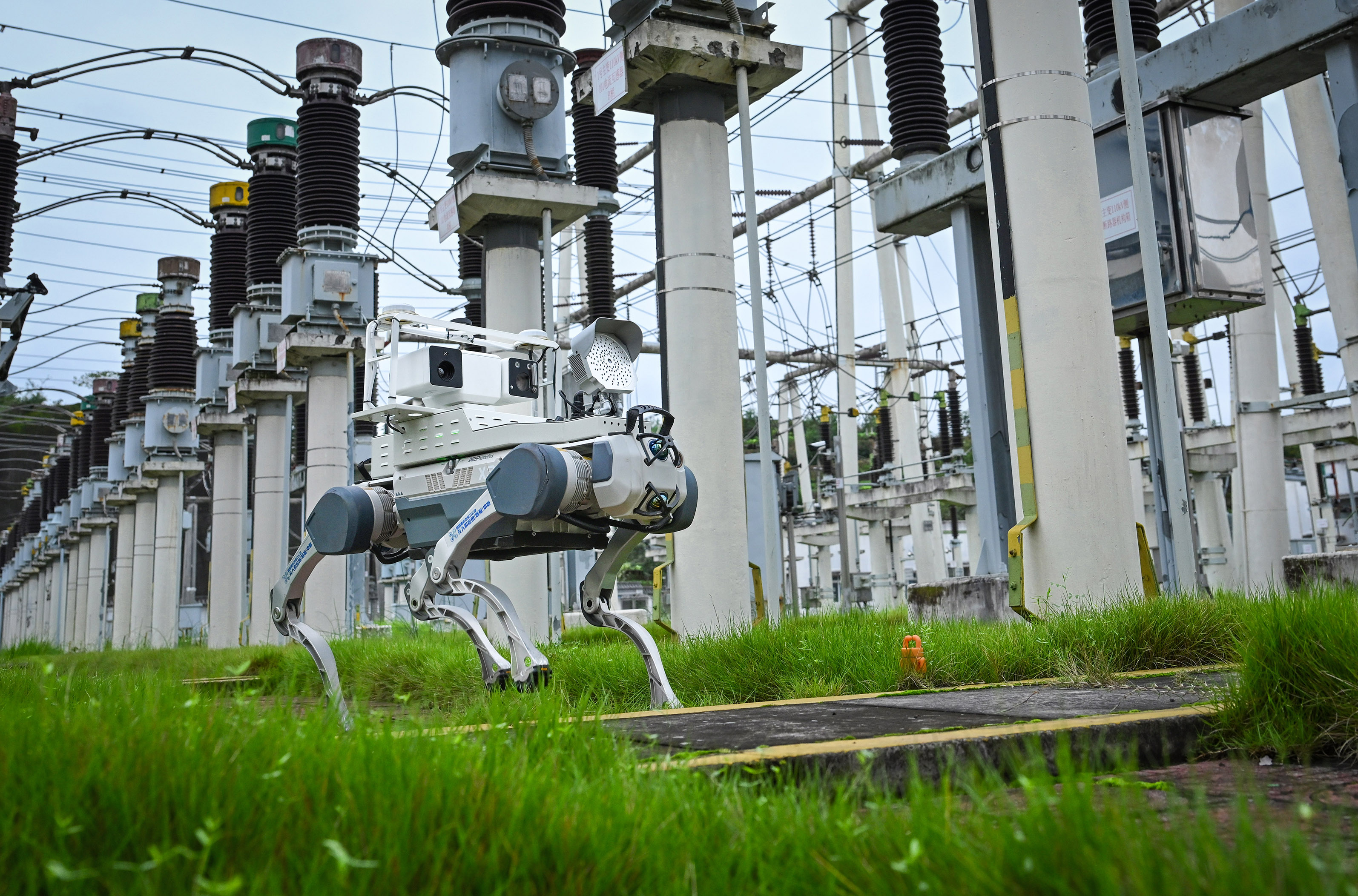 ▲11月19日,永川区110千伏汇龙变电站,机器狗正在巡查套管、绝缘子等是否完好。记者 张锦辉 摄