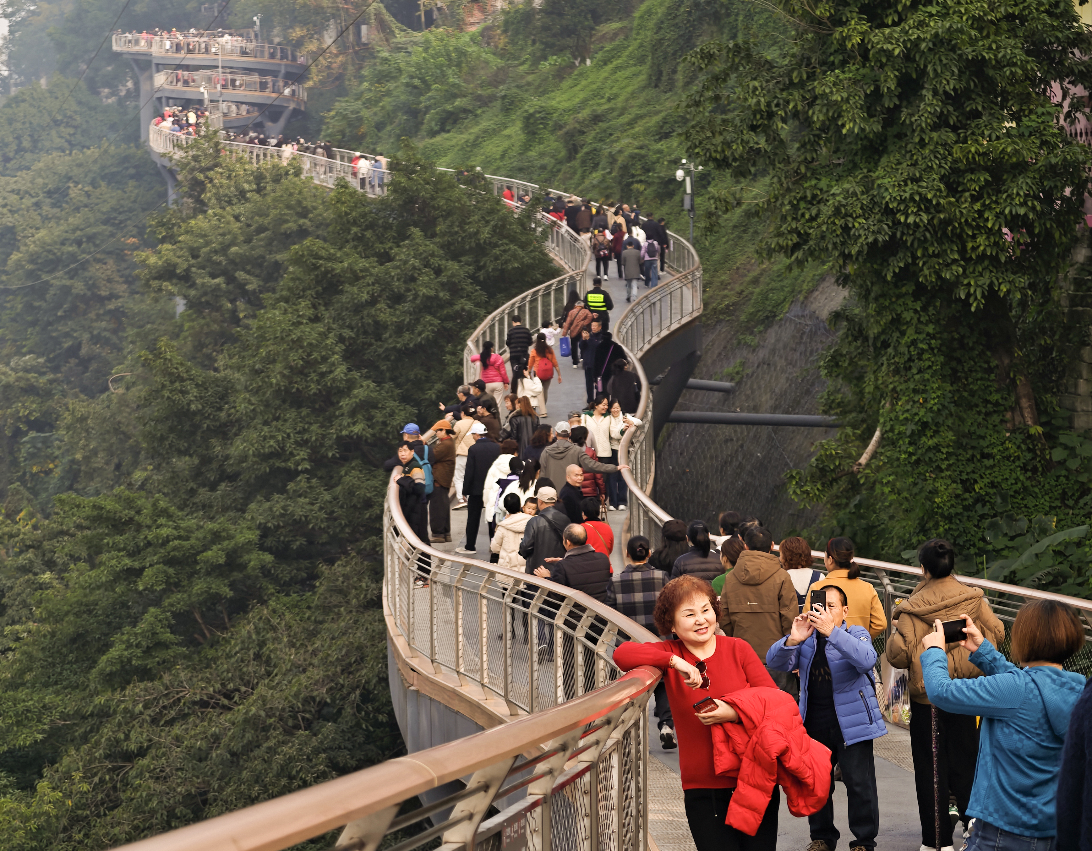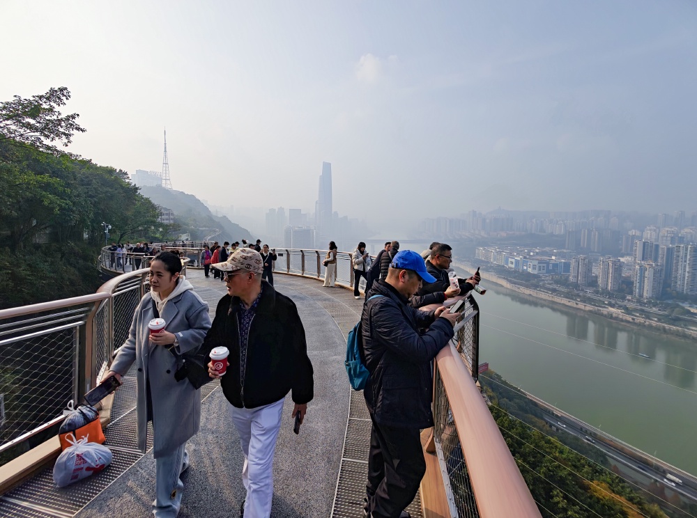 当日下午,主城迎来久违的阳光,新开放的半山崖线鹅岭栈桥迎来大批“追光族”。新开放的栈桥视野开阔,可俯瞰山城美景,成为市民晒太阳的新晋“网红地”。