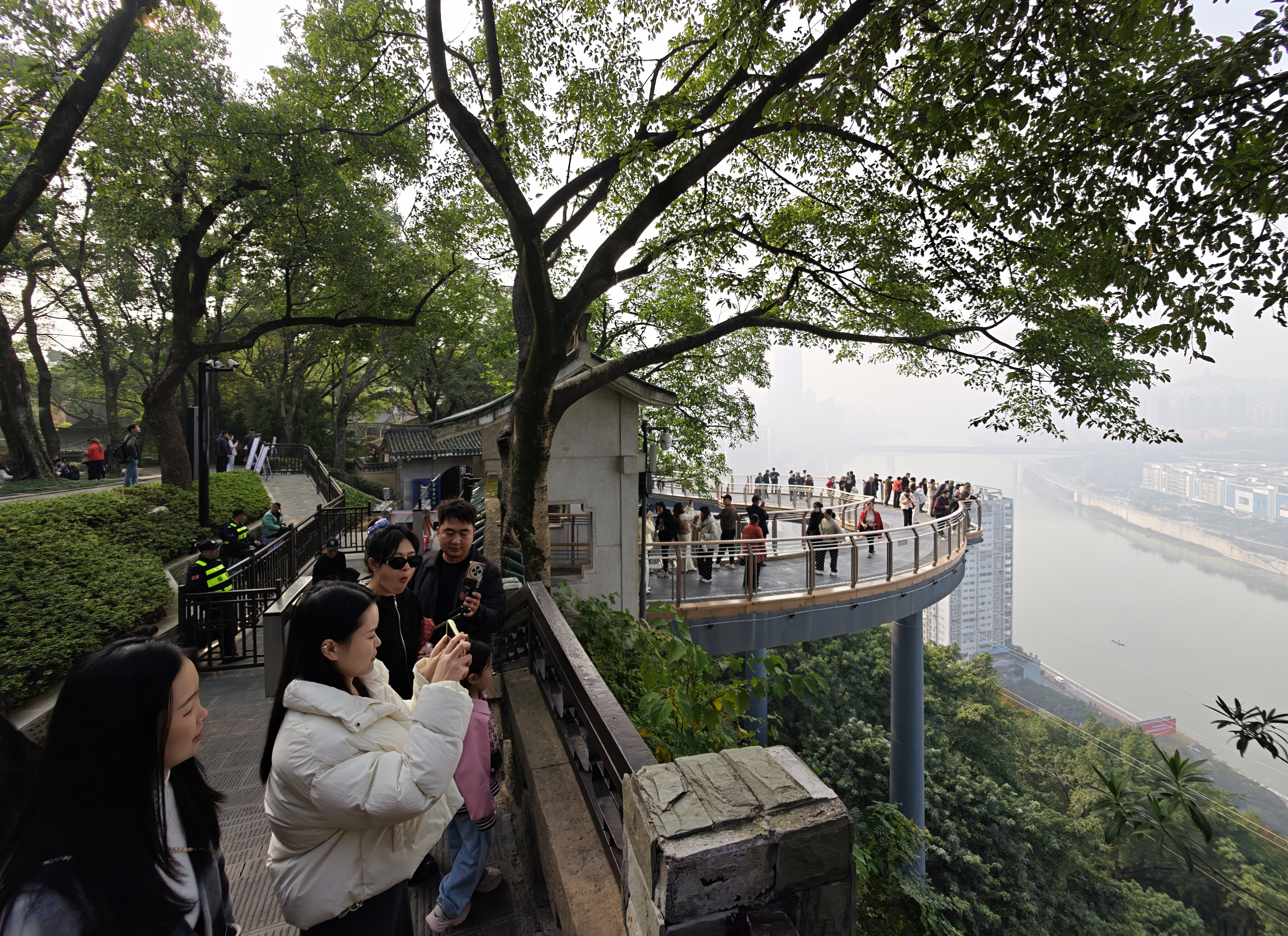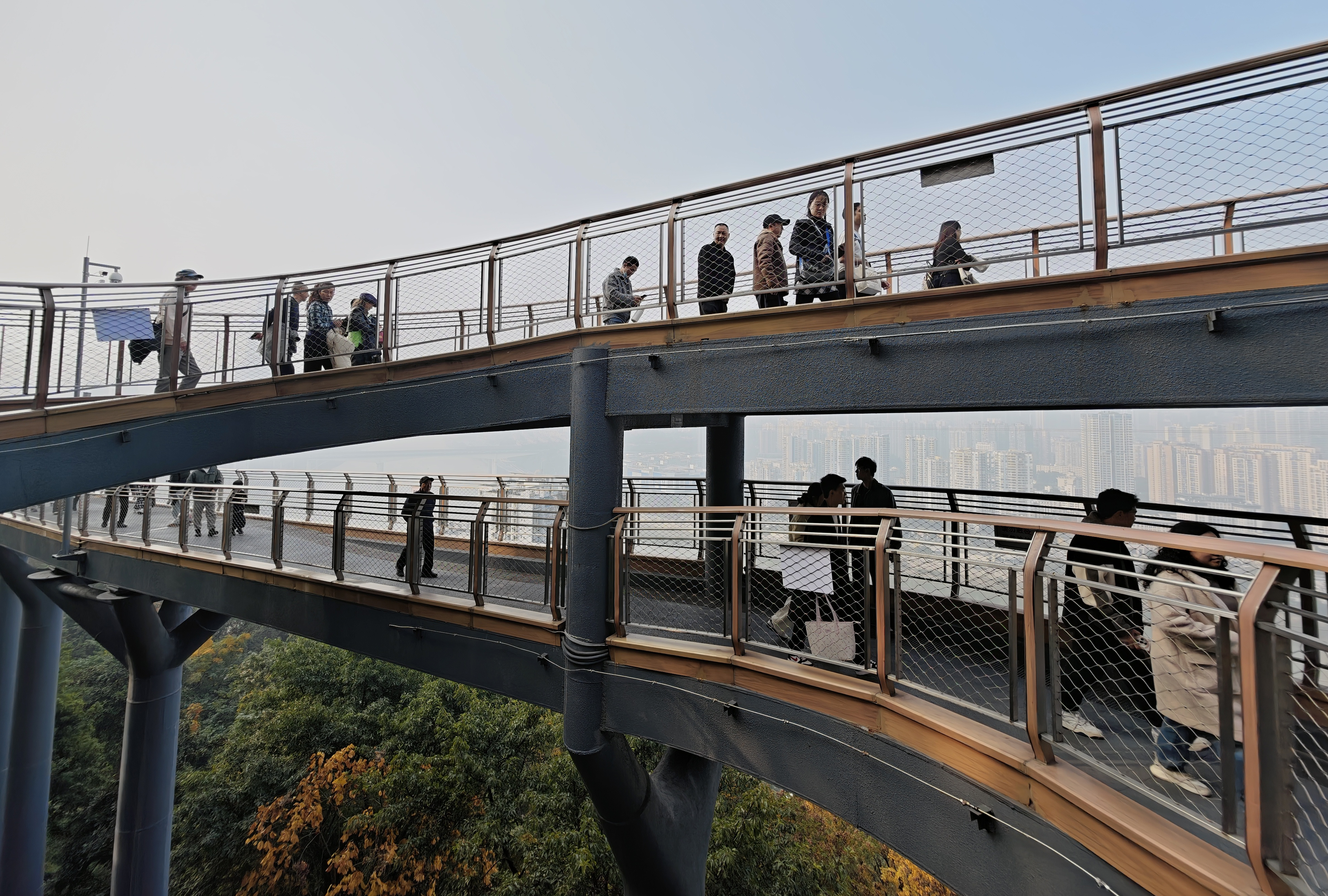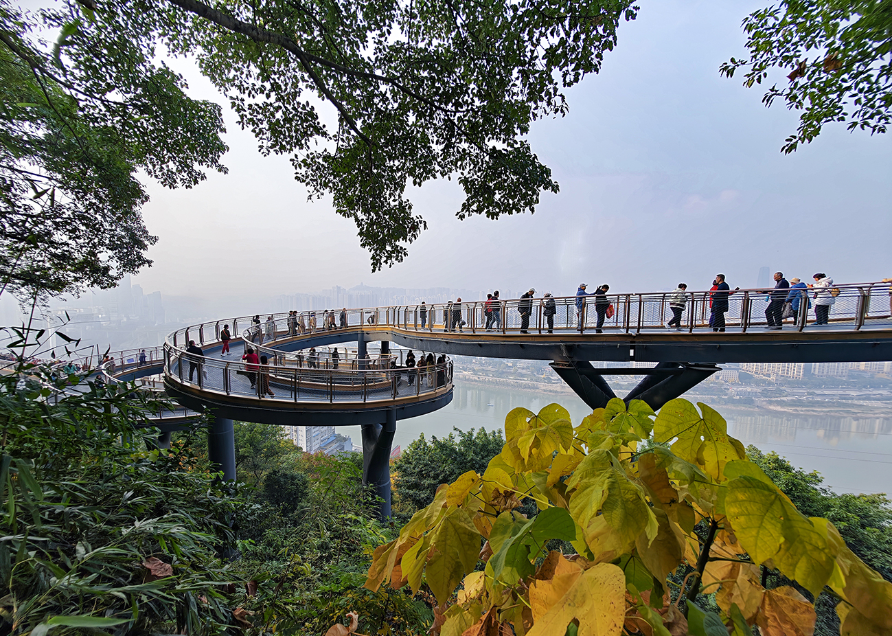 ▲12月10日,渝中区,市民在半山崖线鹅岭栈桥上漫步。记者 刘力 摄