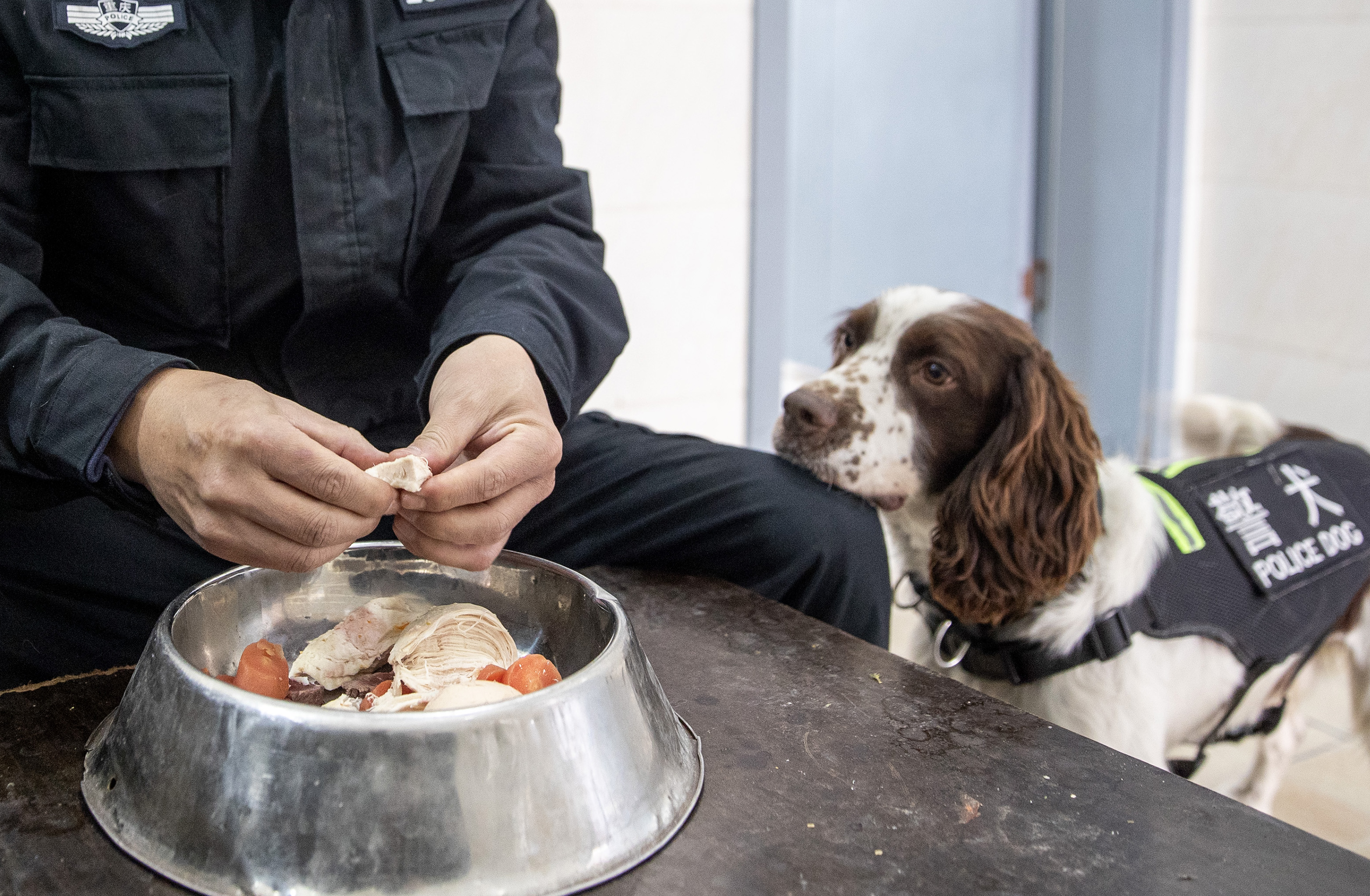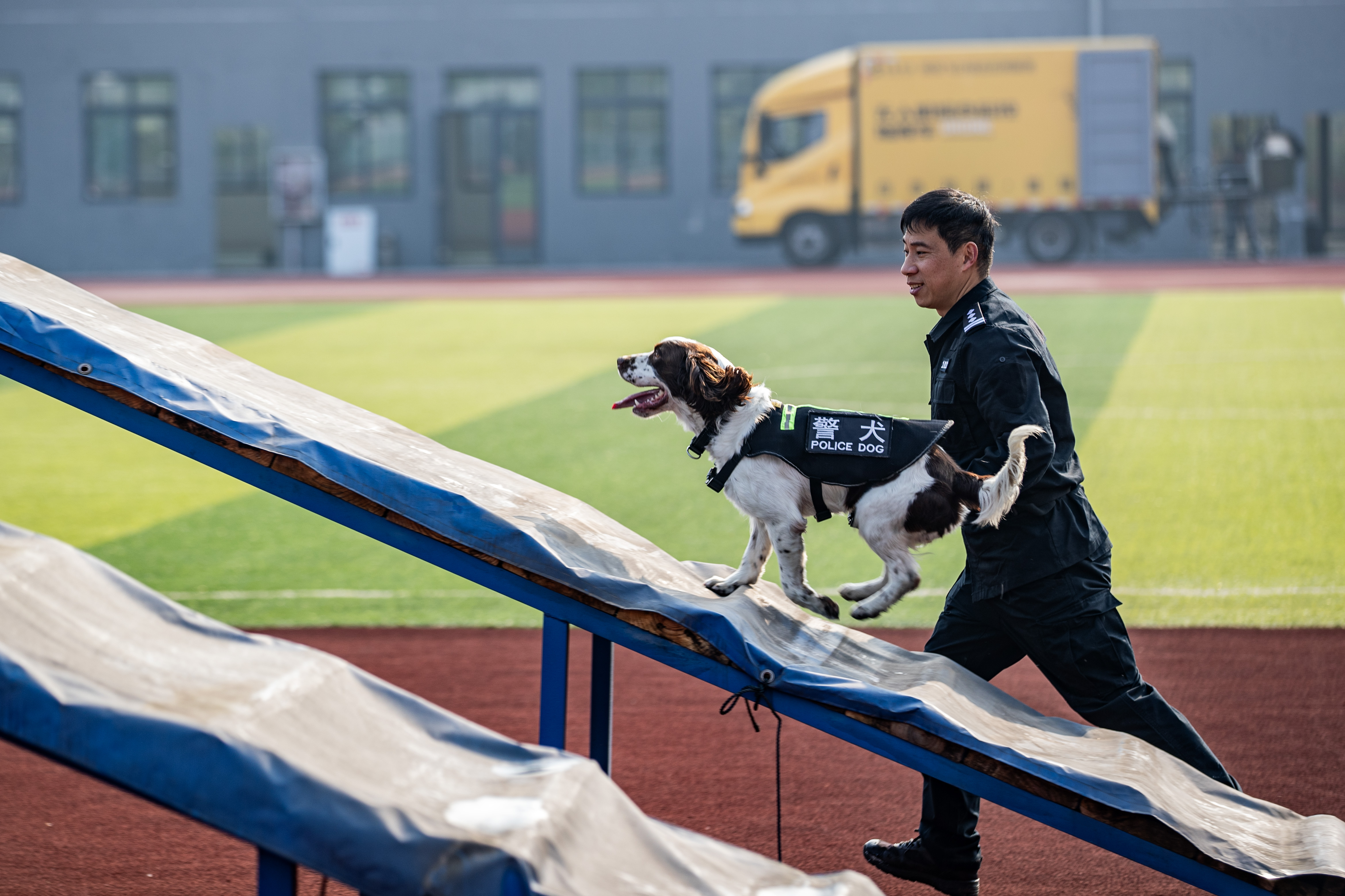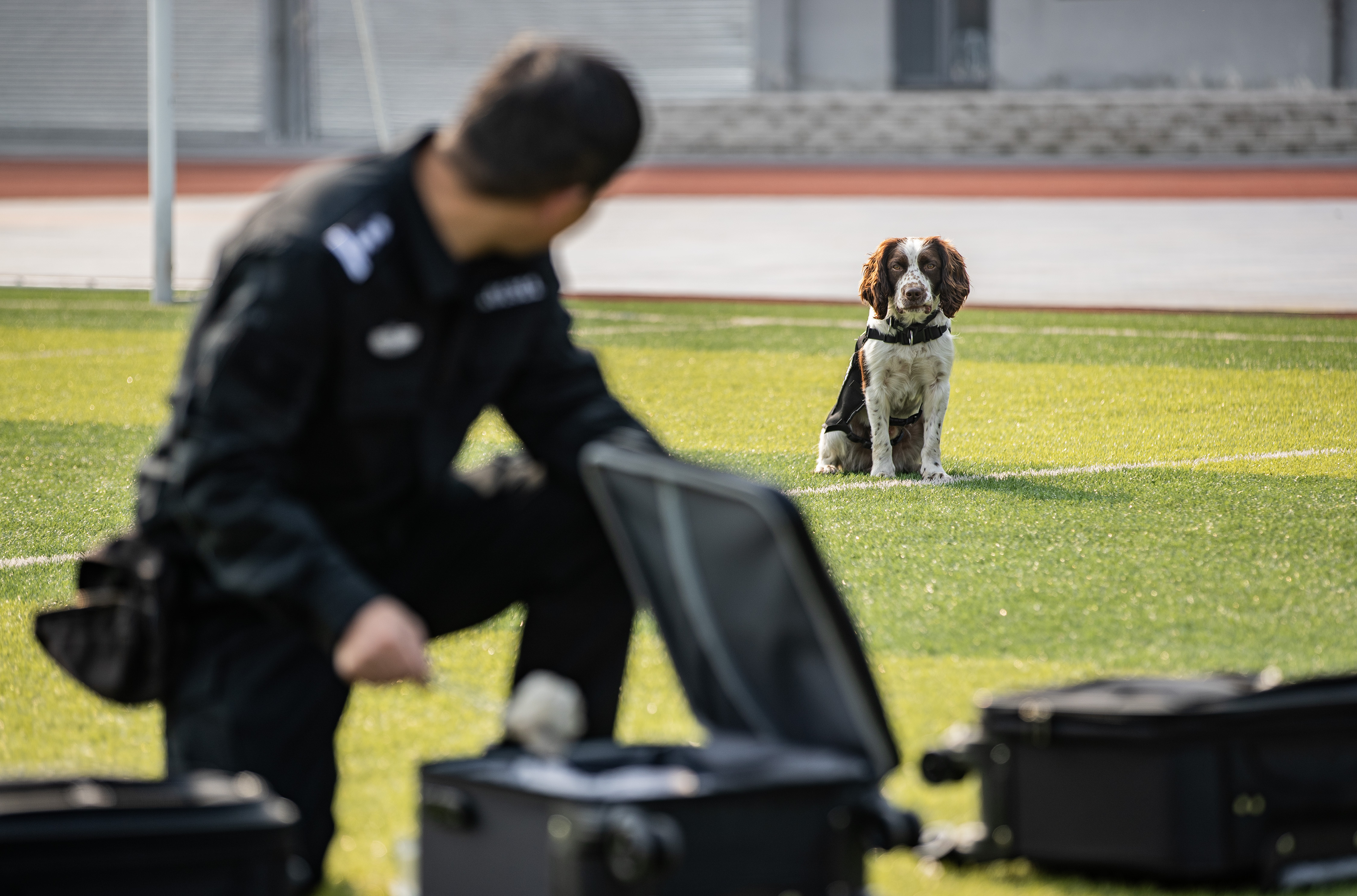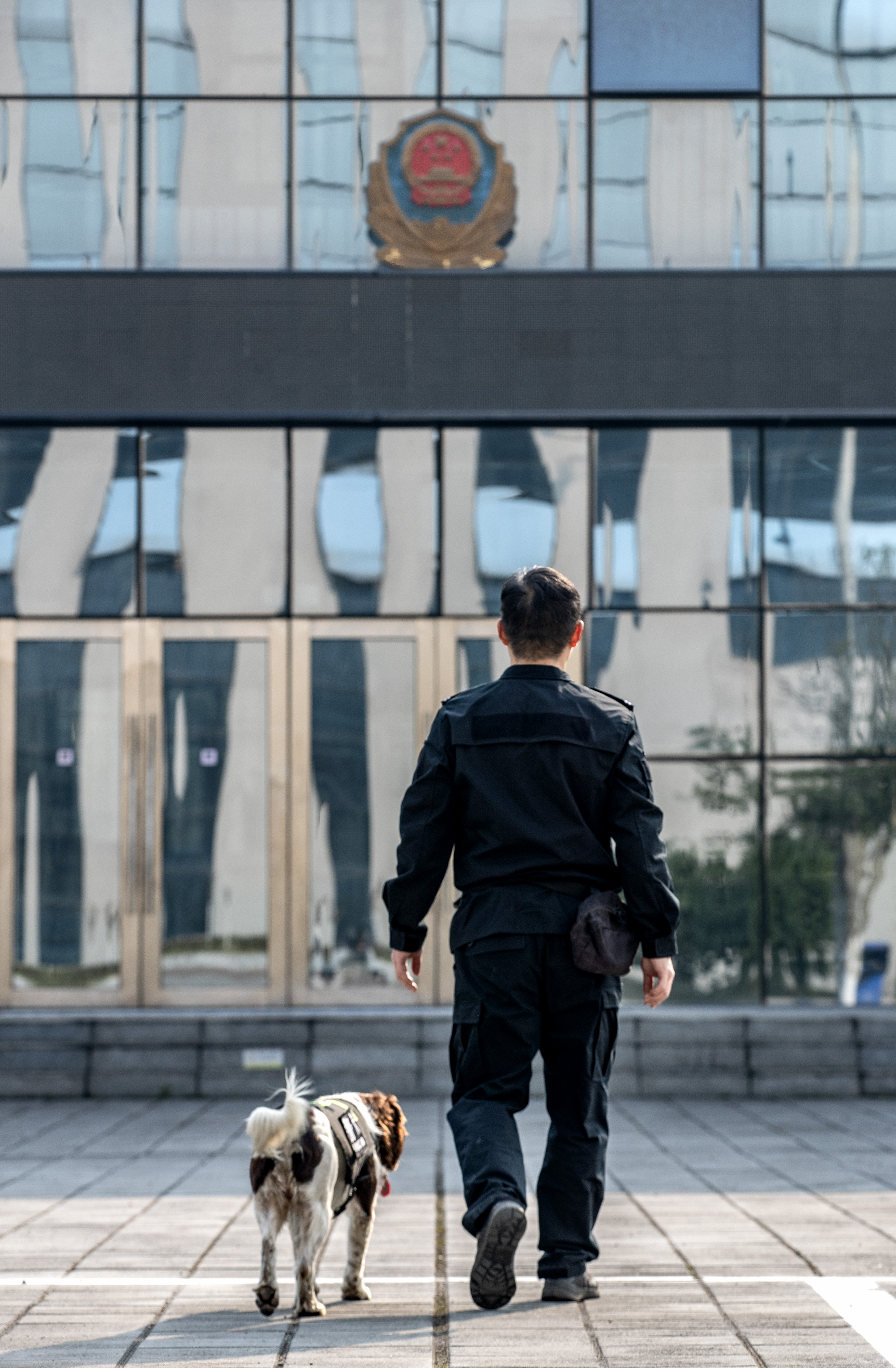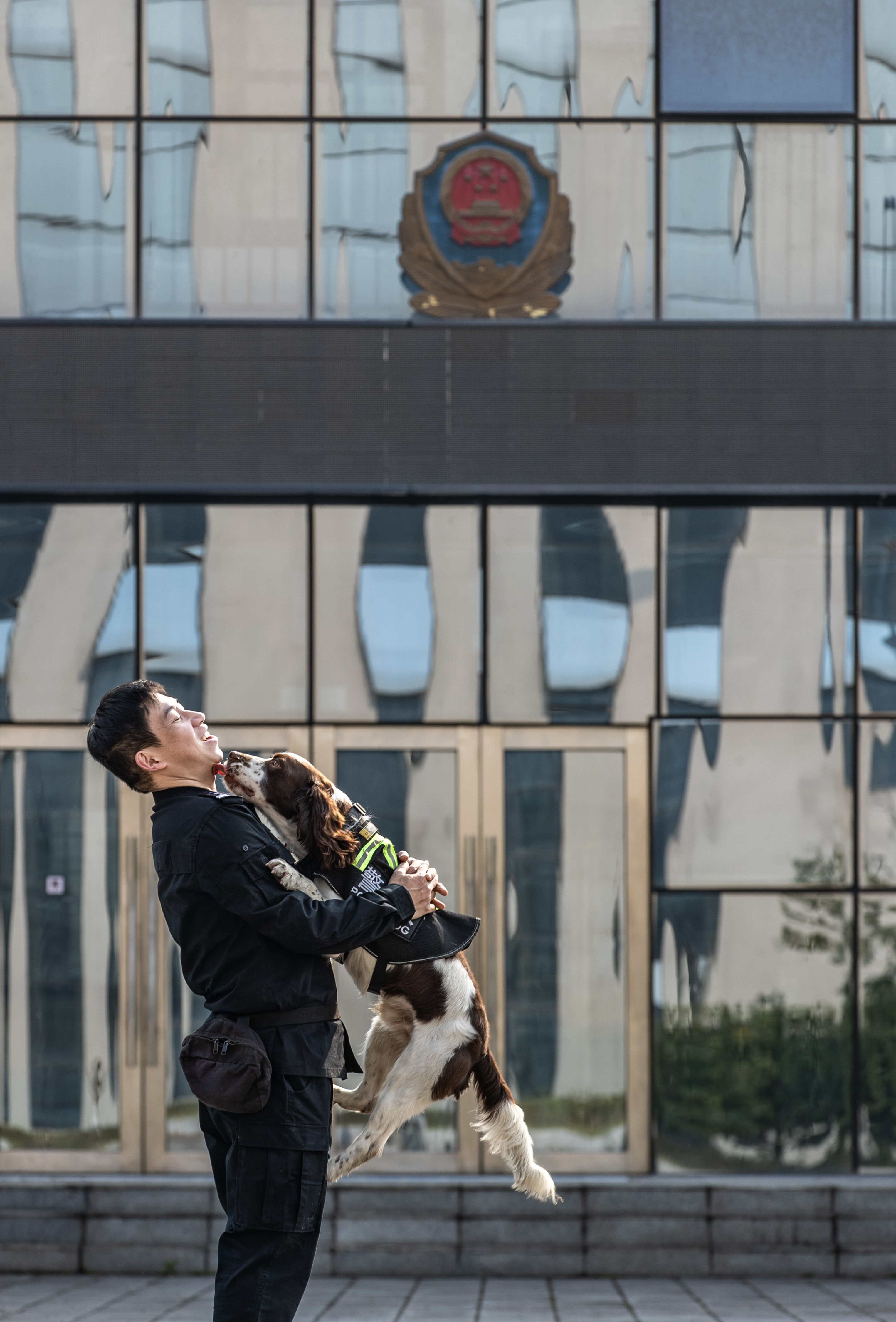 “糖果”这个名字是潘崇科取的。“希望它的‘警生’能多一些甜,少一些危险。”2023年9月出生的糖果,在三个月大时就来到了警犬基地。从那时起,潘崇科就成了它最亲密的人。“幼犬训练就像教小孩子一样。”潘崇科说,“要从建立信任开始,慢慢培养它的自信和社会化能力。”他记得糖果第一次成功跨越障碍时的兴奋,记得它第一次准确示警时的成就感,也记得它生病时自己的担忧。“它们把一生都献给了工作,我们理应给它们最好的照顾。”他常常和年轻同事分享自己的经验:“每只犬都是独特的个体,没有放之四海而皆准的训练方法。关键是要用心观察,找到最适合它的方式。”