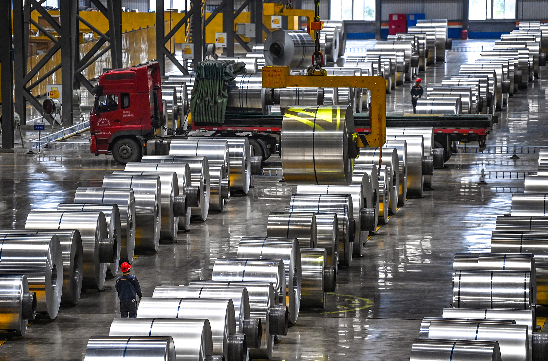 ▲1月4日,九龙坡区西南铝冷轧生产线,工人在吊运成品铝卷。记者 郑宇 摄