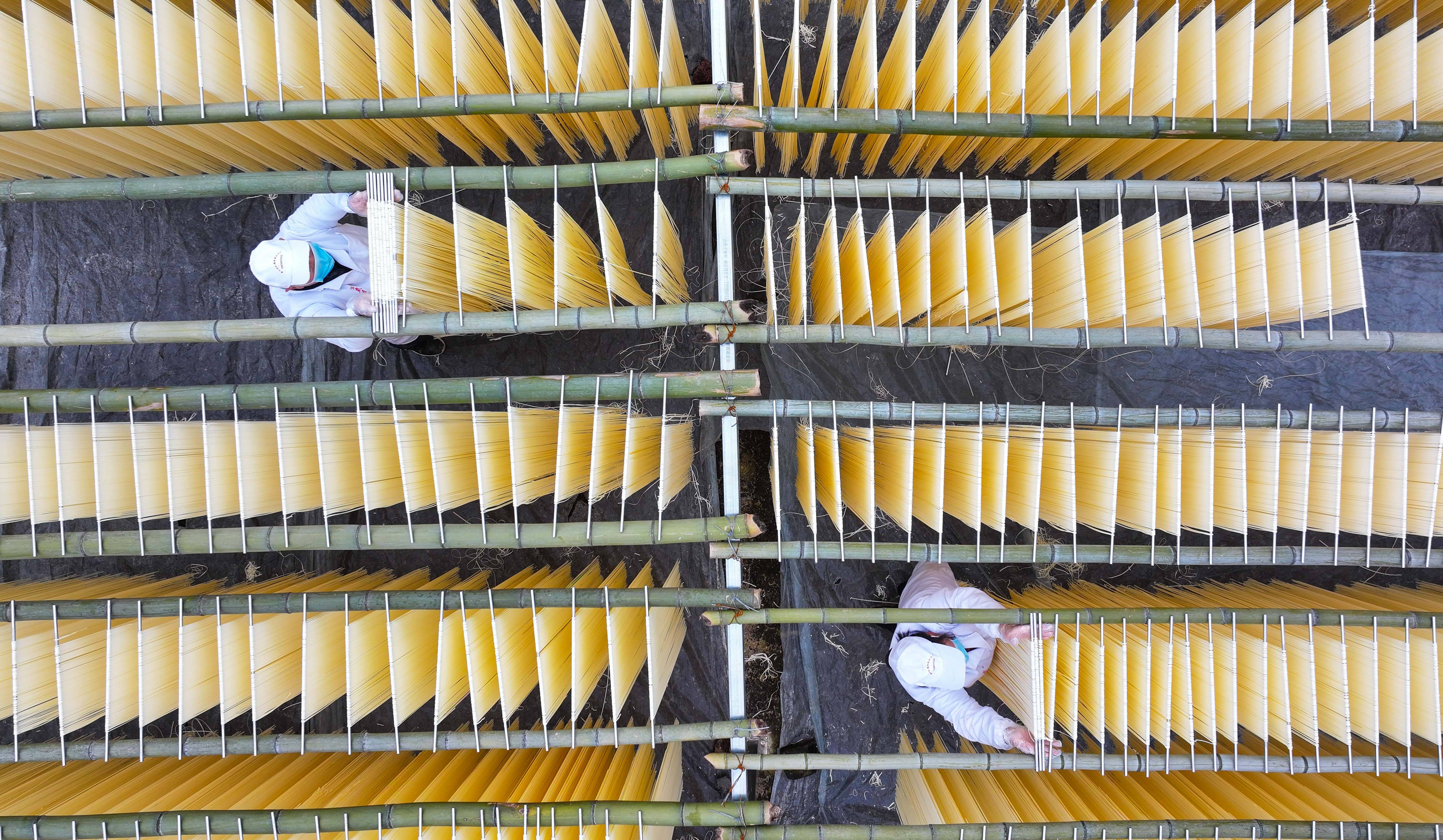 ▲1月5日,垫江县桂溪街道集体社区非遗挂面厂,工人正在晾晒挂面。特约摄影 龚长浩