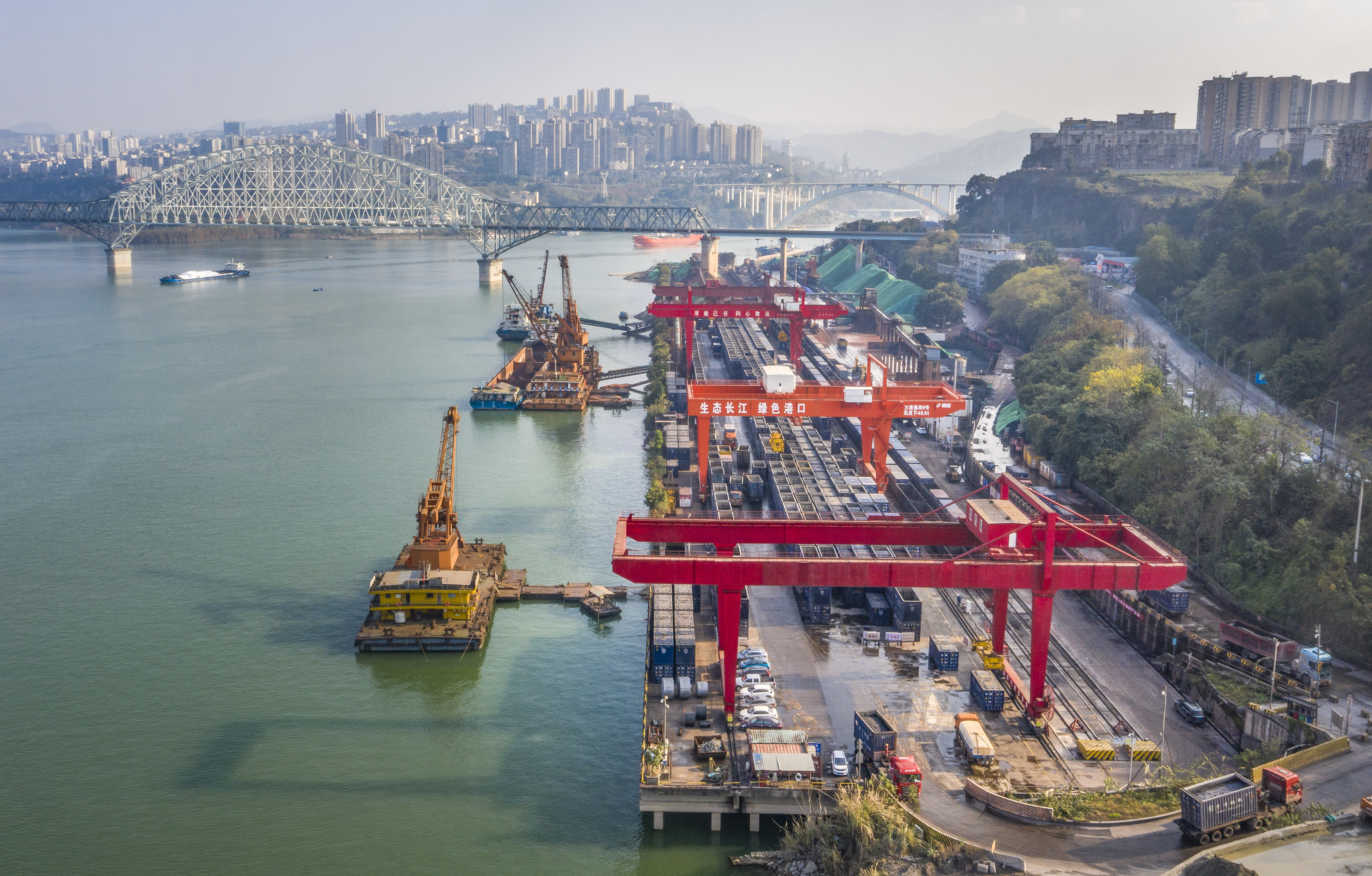 ▲1月6日,万州港红溪沟滚装码头,现场一片繁忙。首席记者 龙帆 摄