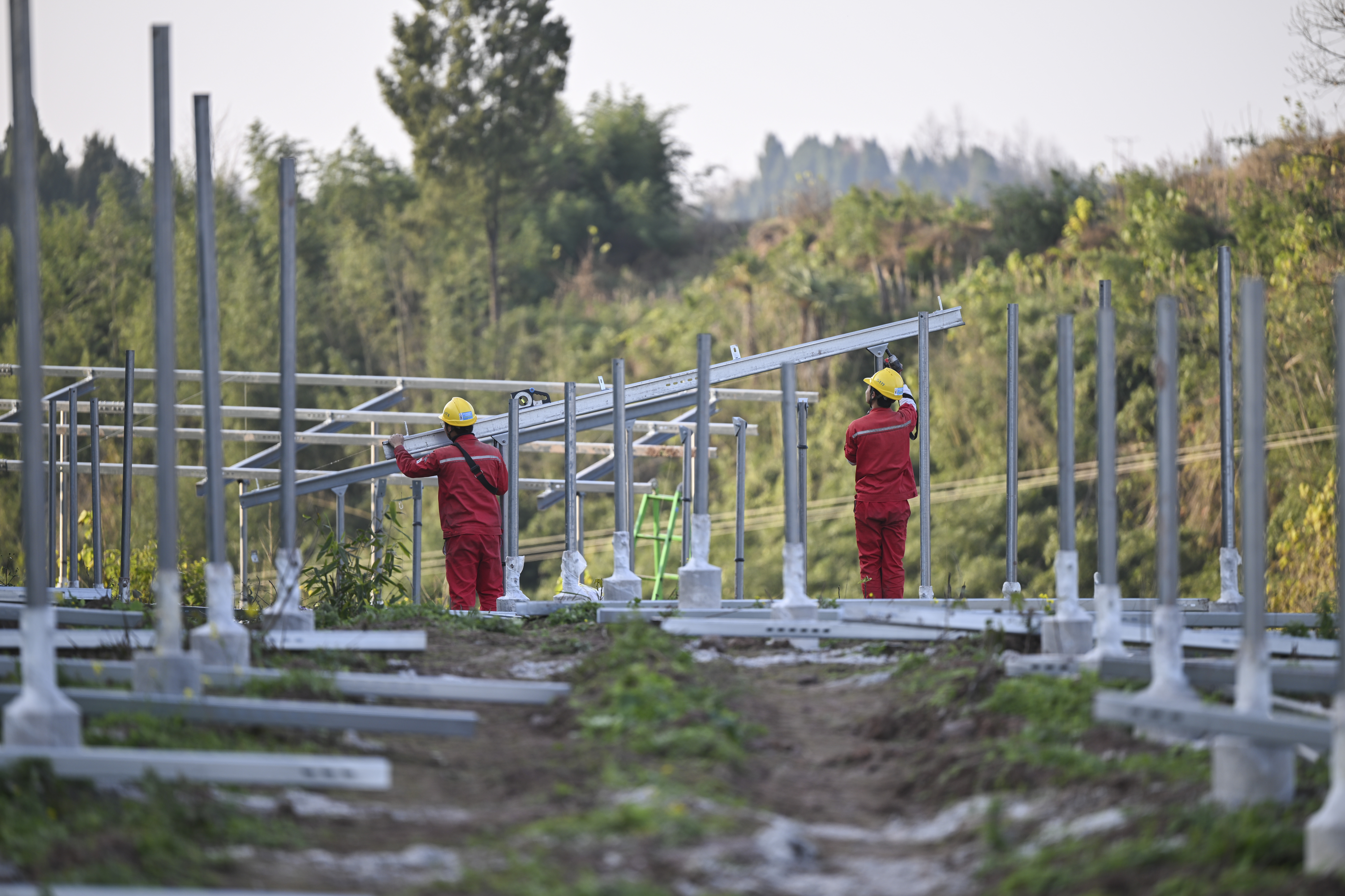▲1月6日,铜梁区中广核高楼维新光伏项目施工现场,待搭建的支架按规律排列。记者 谢智强 摄
