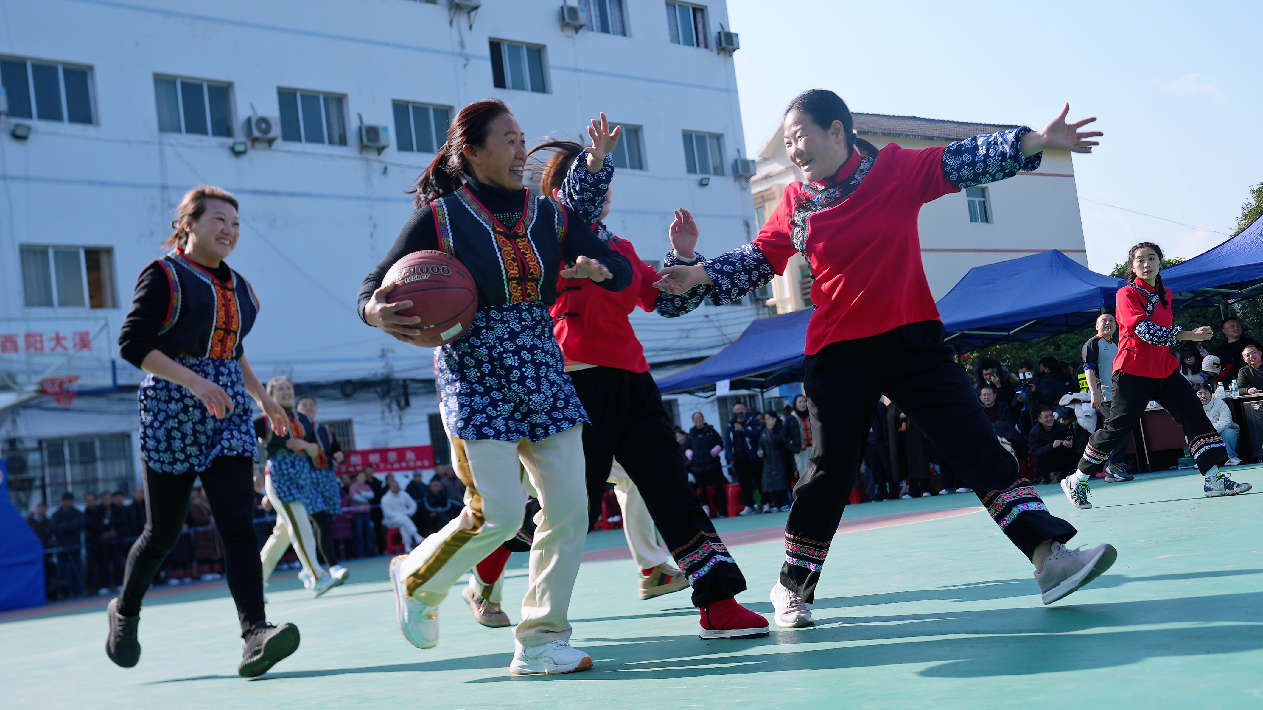 ▲1月6日,酉阳县大溪镇,“嬢嬢”们在篮球赛场上积极拼抢。通讯员 石嘉黎 摄