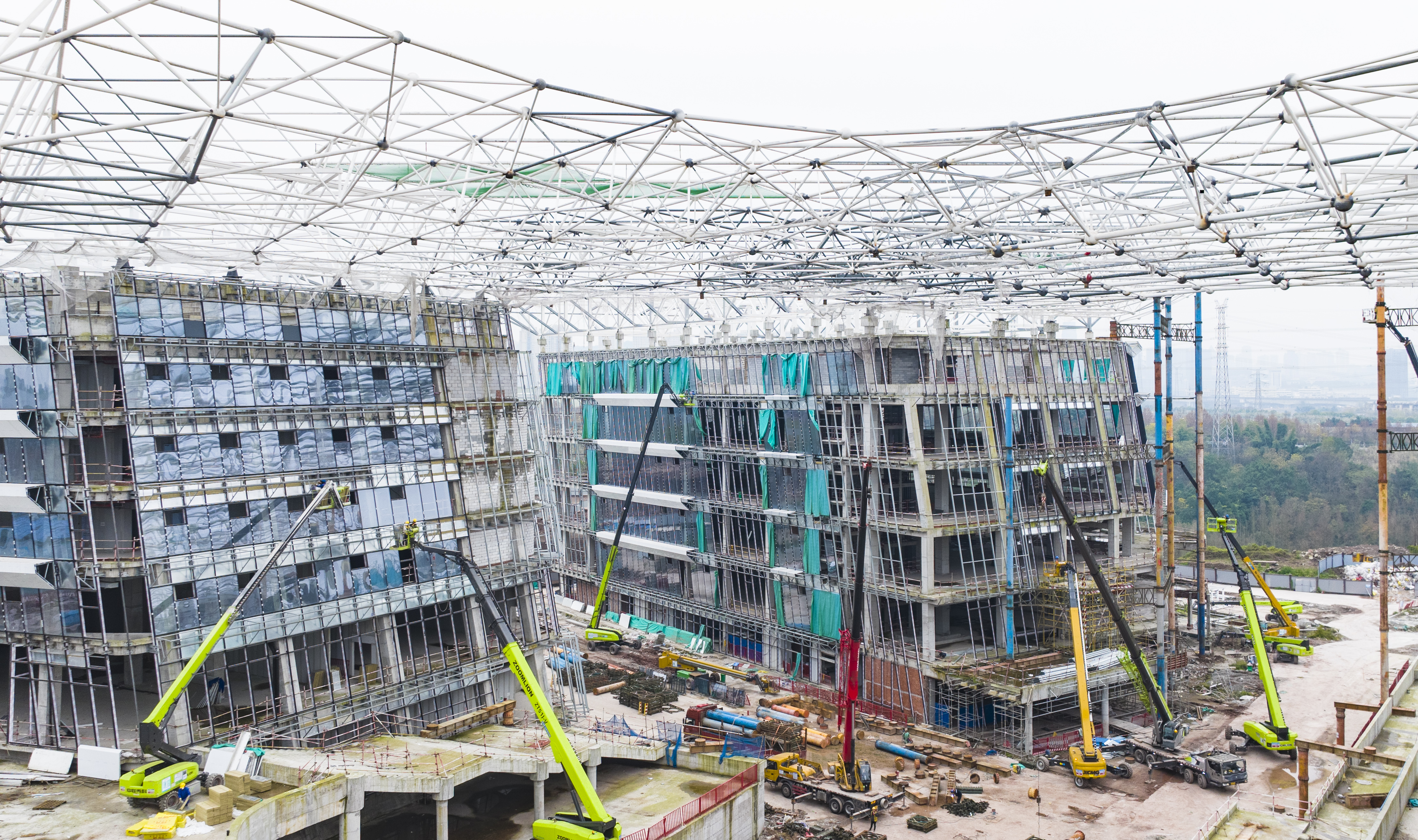▲1月7日,两江新区市民中心施工现场,工人正加紧施工抢抓进度。记者 齐岚森 摄
