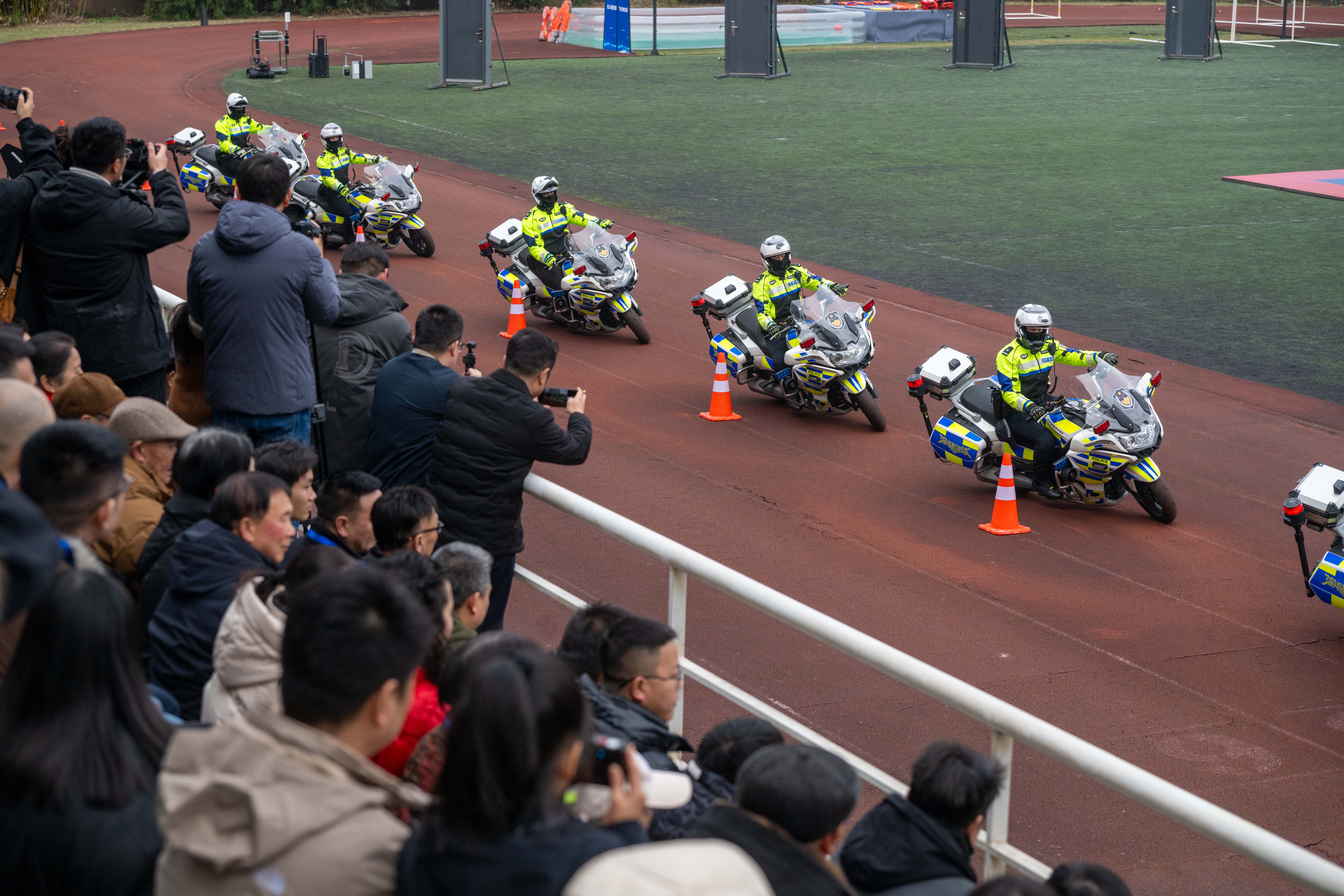 ▲1月7日,重庆市公安局训练场,渝警骁骑队员展示骑行技艺。记者 崔力 摄