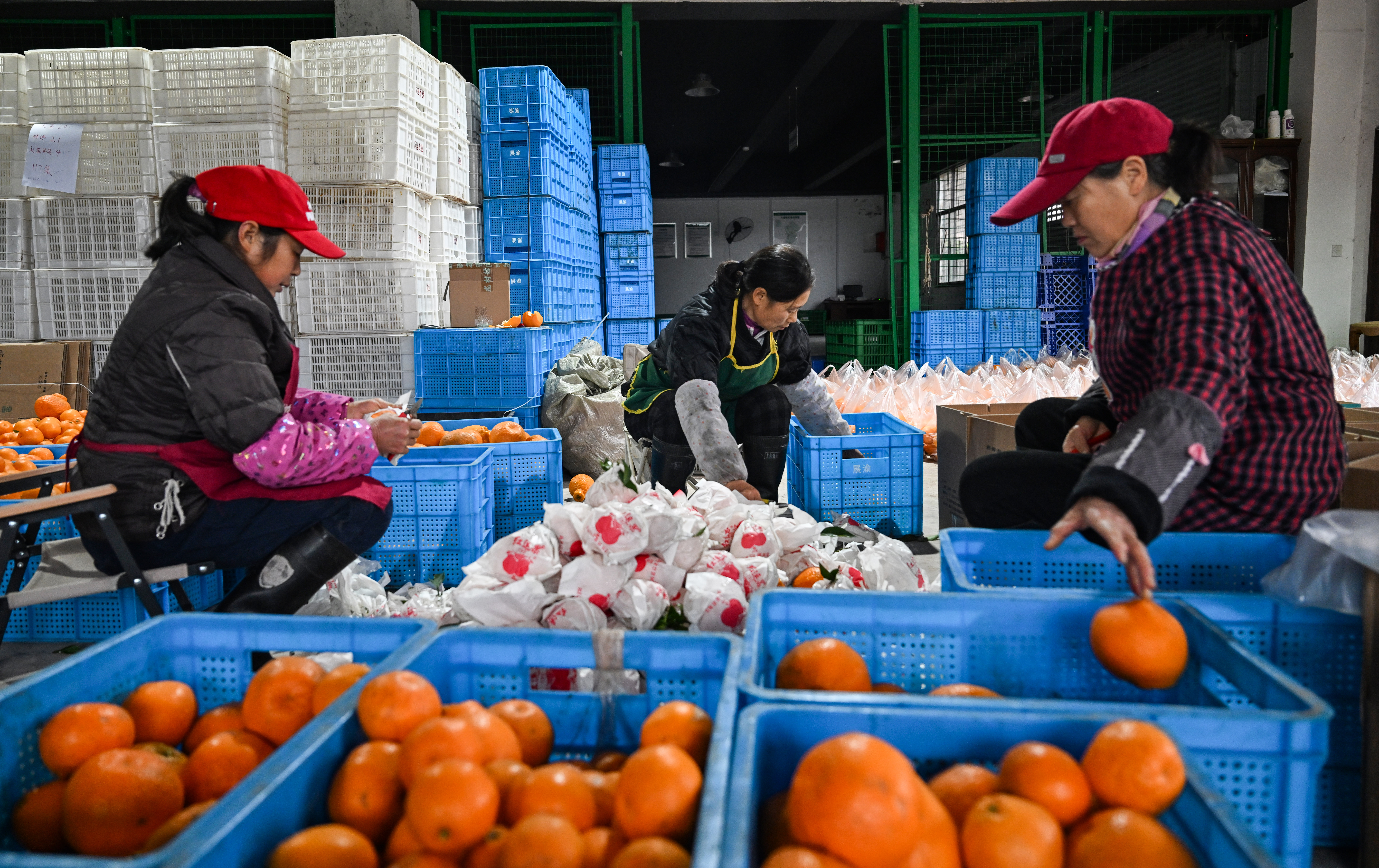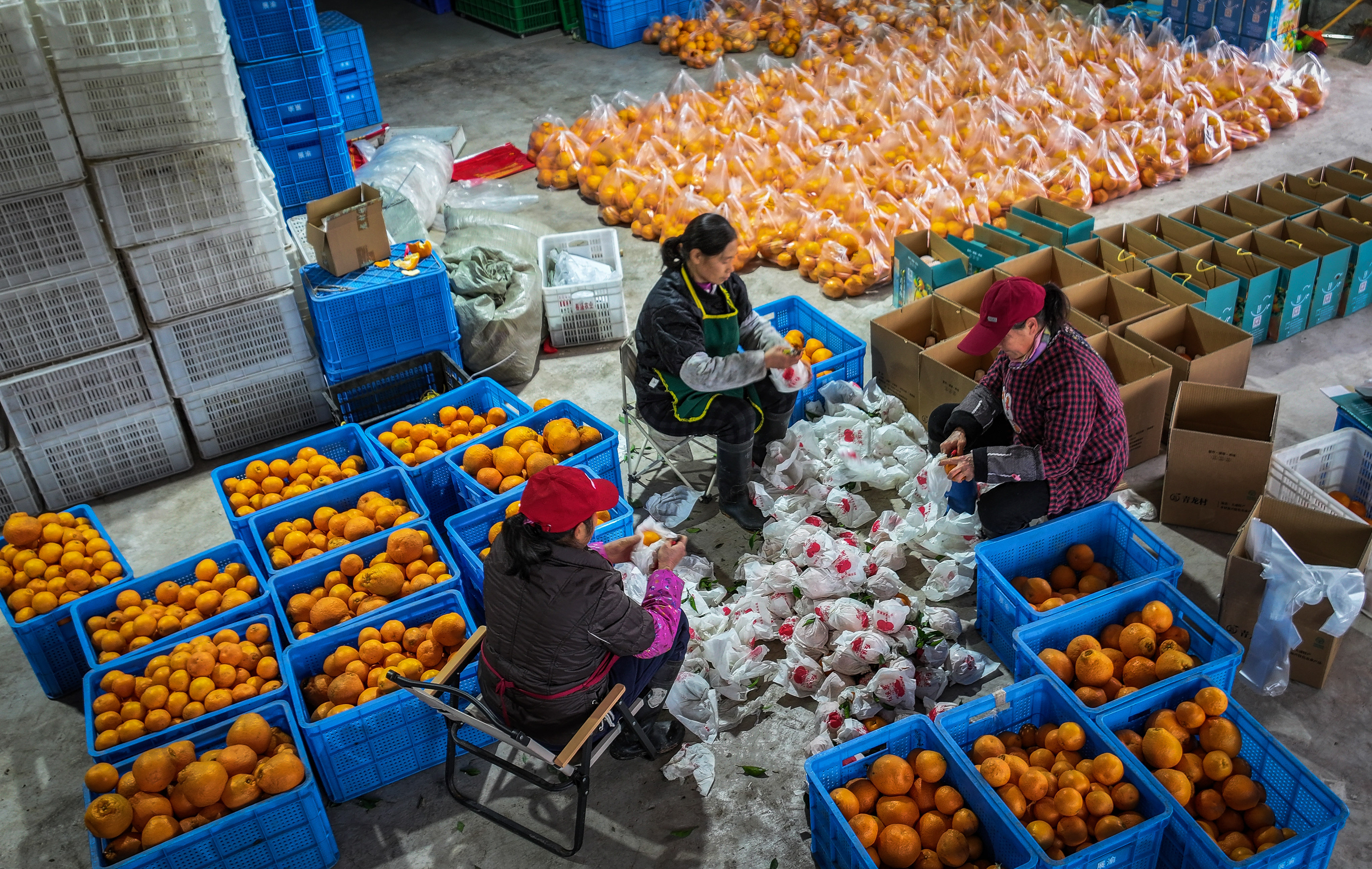 ▲2026年1月20日,北碚区大盛镇青龙村,村民正在分装柑橘。首席记者 龙帆 摄