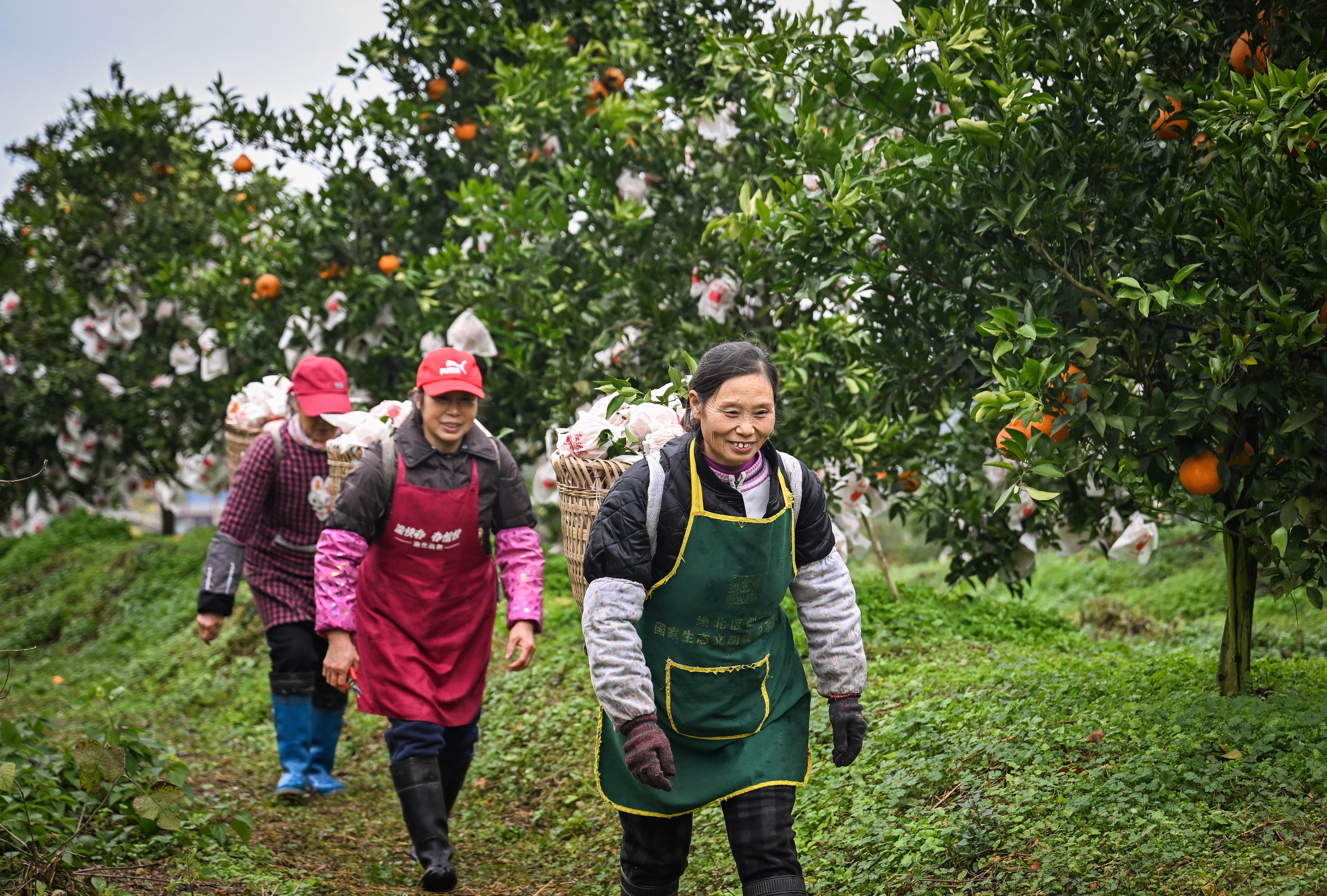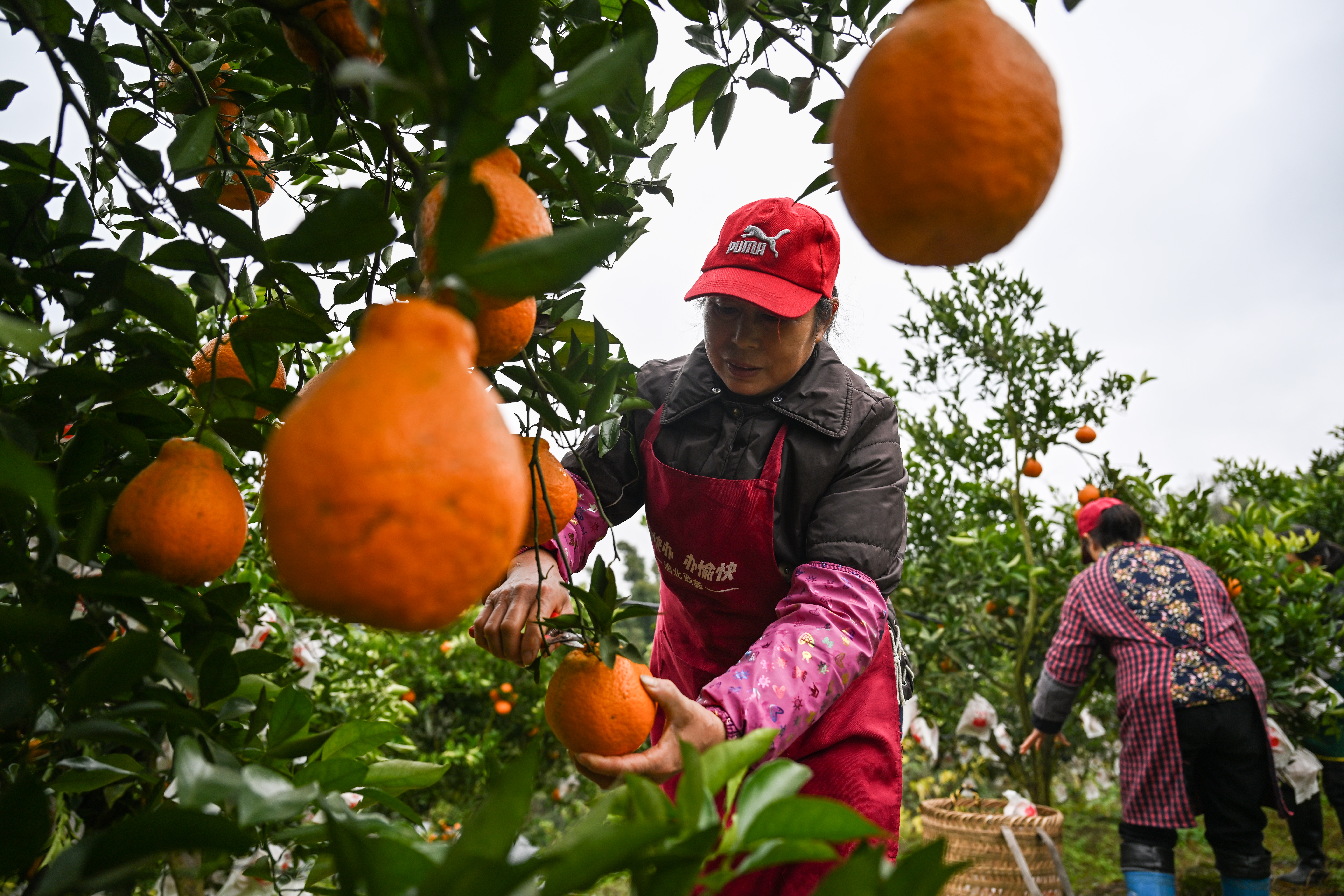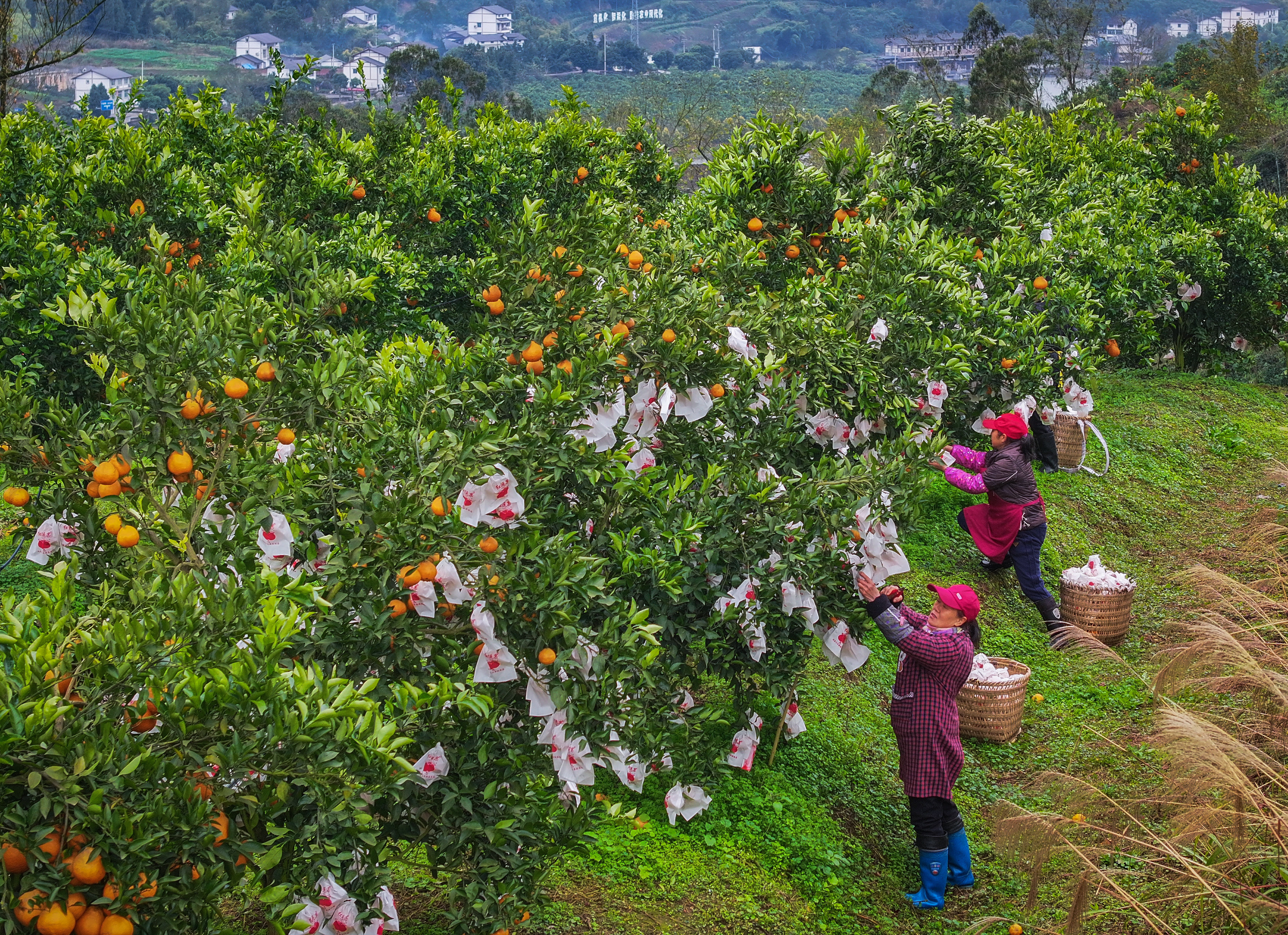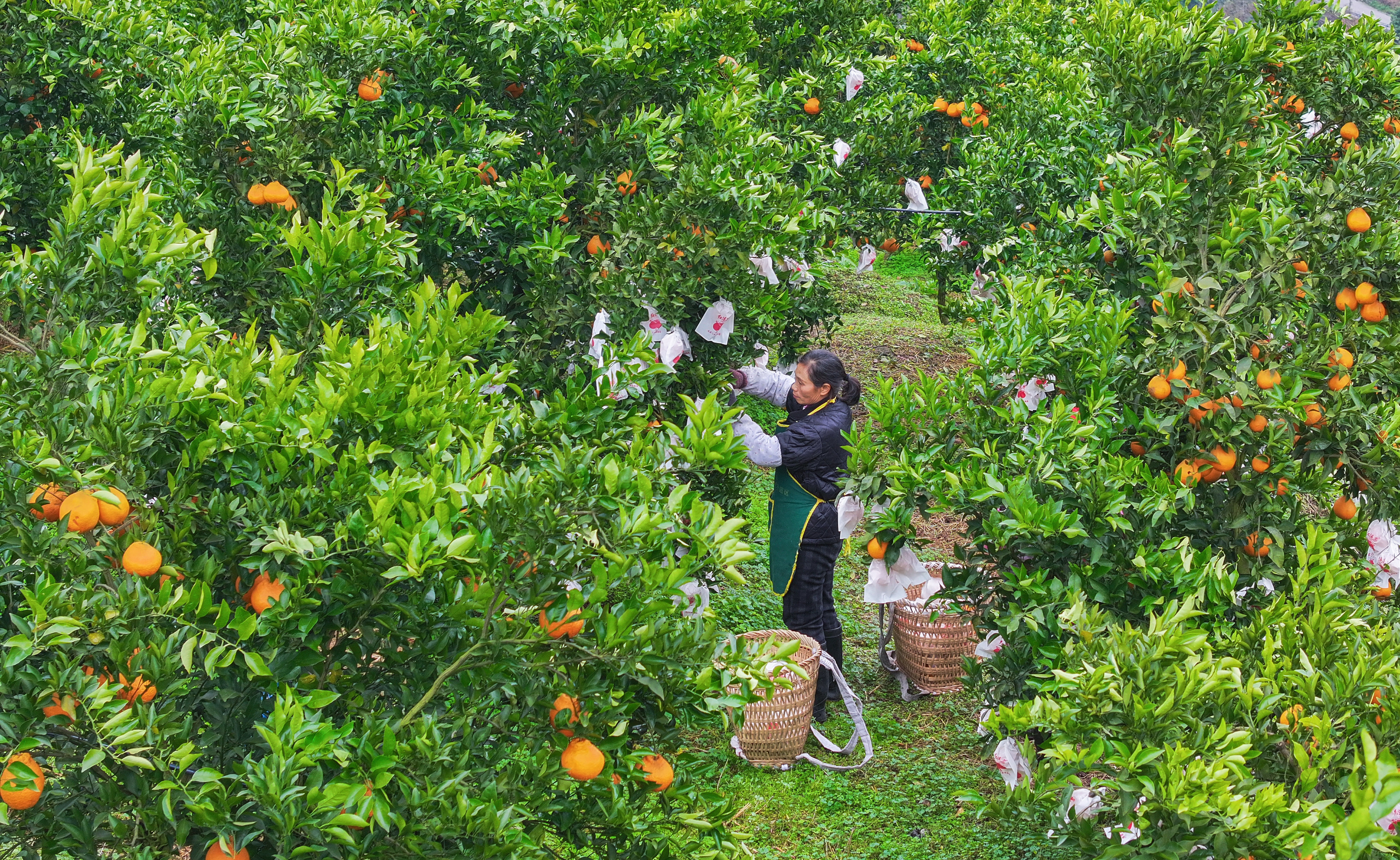 ▲1月20日,北碚区大盛镇青龙村,村民正在果园里采摘柑橘。首席记者 龙帆 摄