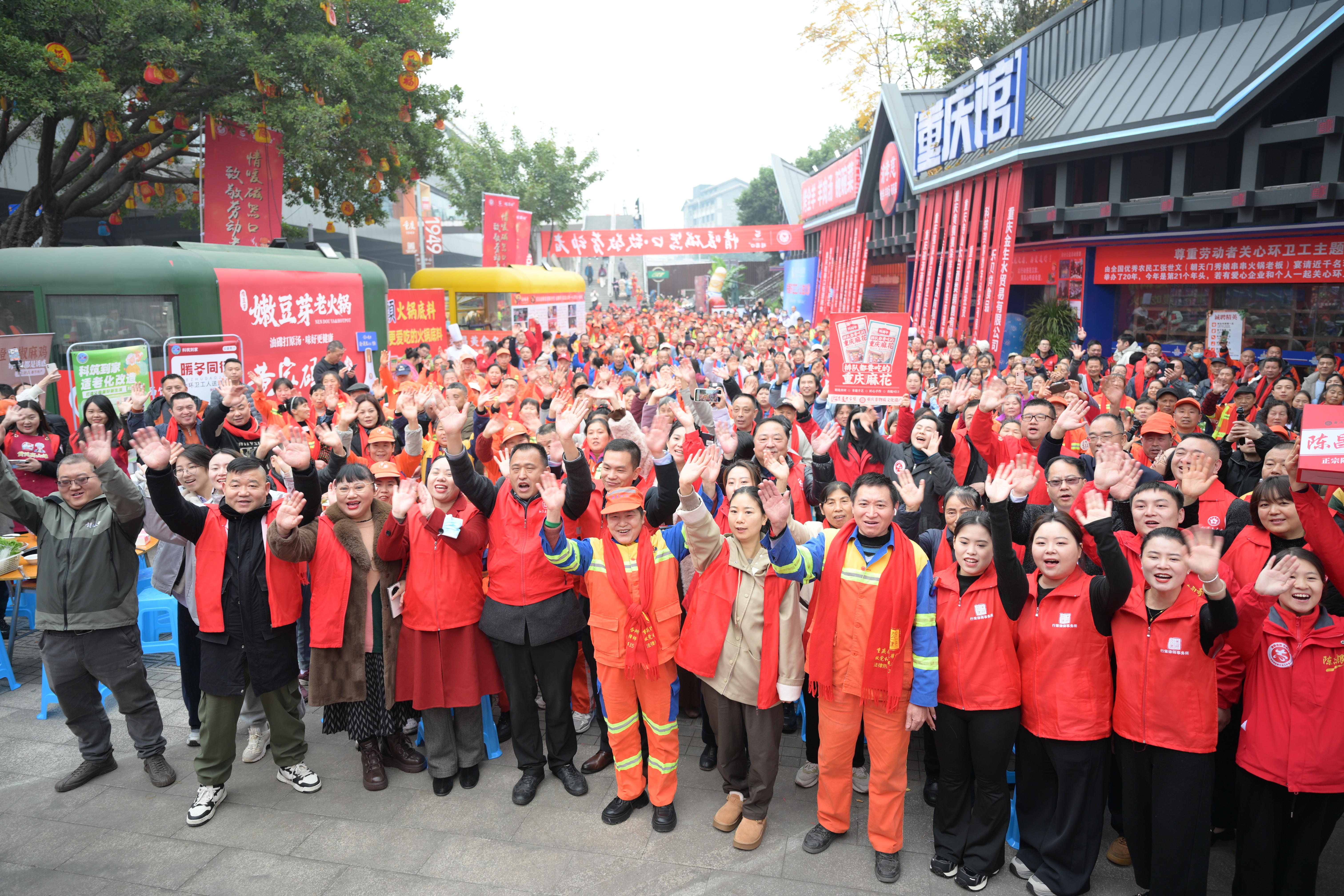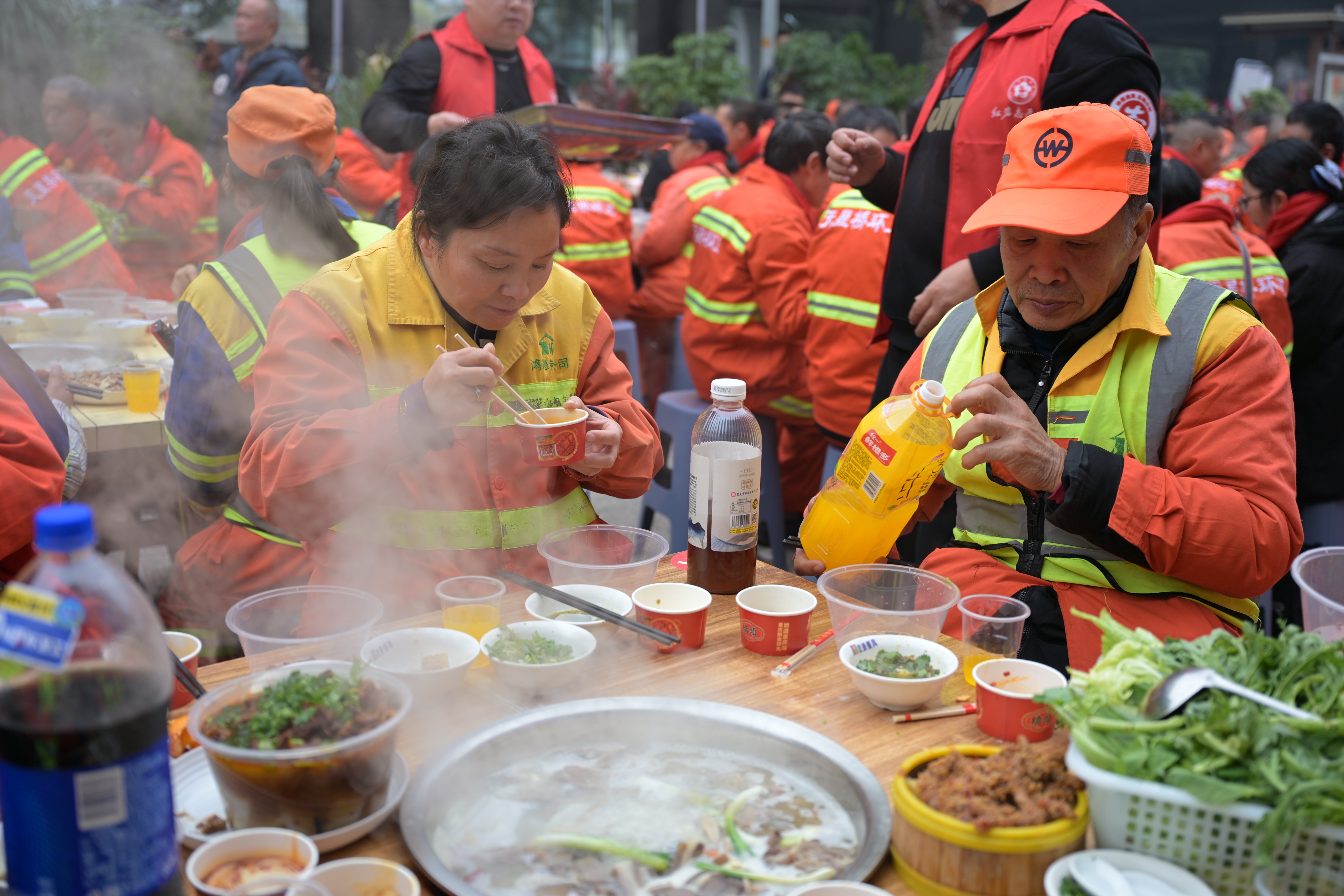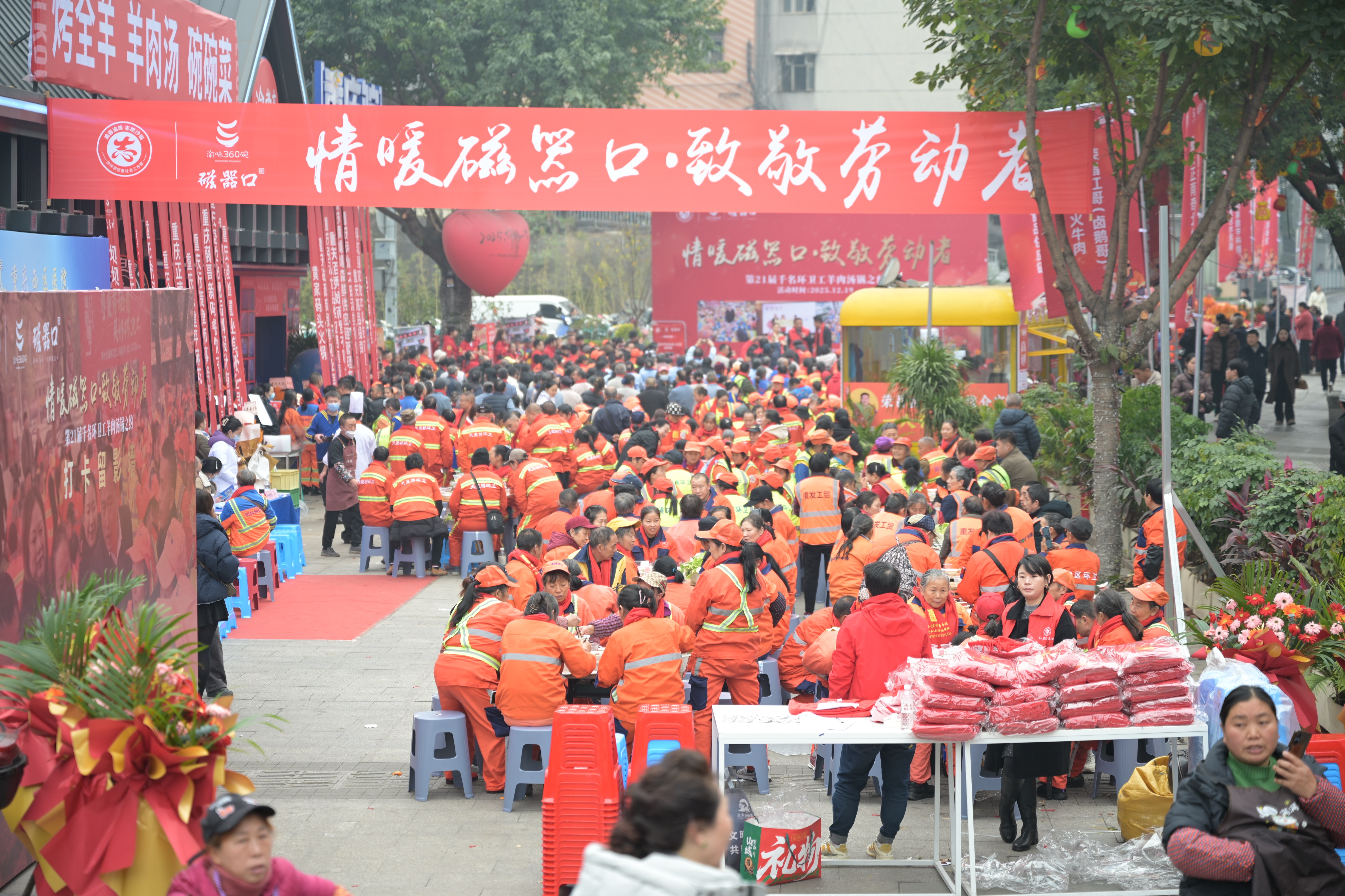 12月19日,由知名公益人张世文发起的“渝味暖心·坝坝宴”在千年古镇磁器口开宴,上千名环卫工欢聚一堂,品尝羊肉汤锅、荣昌卤鹅等重庆美食,感受这座城市的温暖。