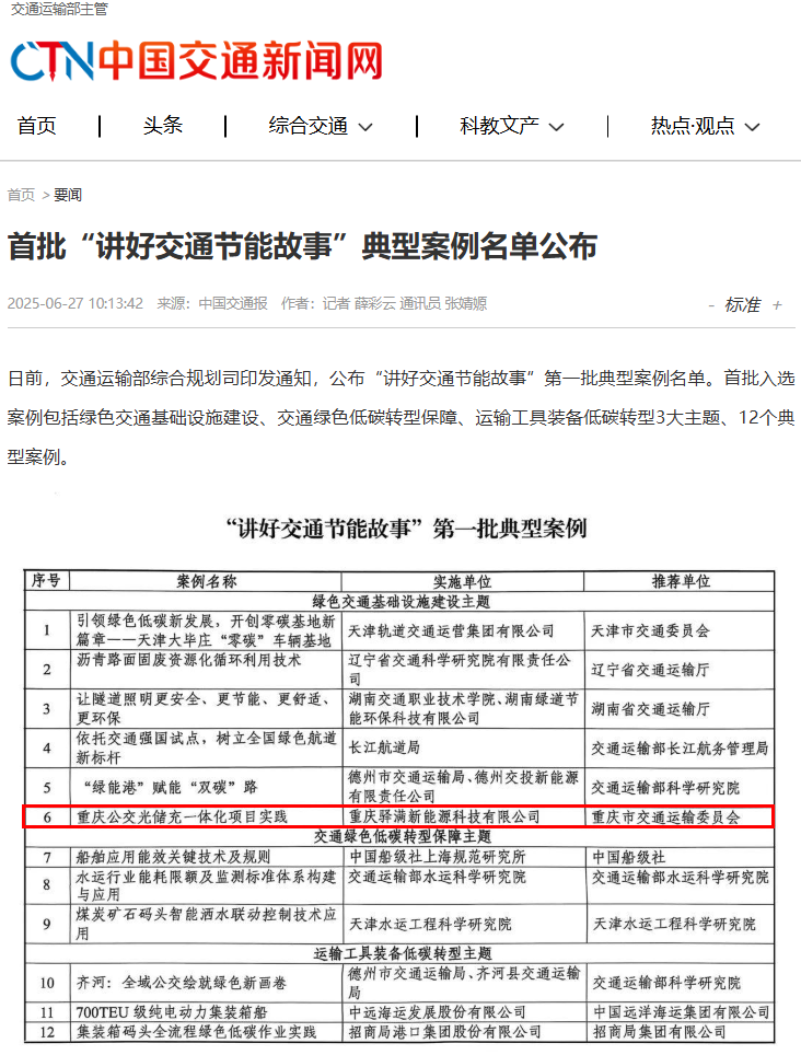 值得一提的是,该项目的创新实践与显著成效还被收入《交通运输绿色低碳发展报告(2024-2025)》,进一步发挥了行业引领和示范作用。这不仅是对驿满新能源公司在绿色交通领域探索的高度认可,更为全国交通运输行业的绿色低碳发展提供了宝贵经验和示范。